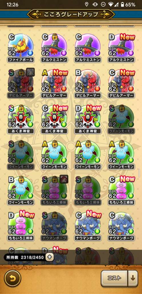 コスト順で並べた時、当方の環境ではクイーンモーモンの位置だけが違っていましたので報告します、チェッカーではアルケミストンとデビルアーマーの間に表示されていますが、ウォークではあくま神官とももいろの間に表示されます。