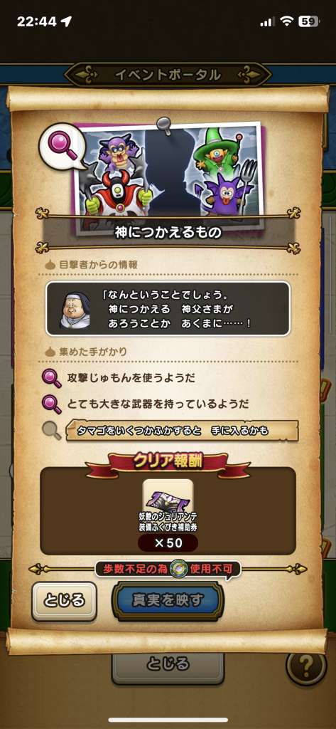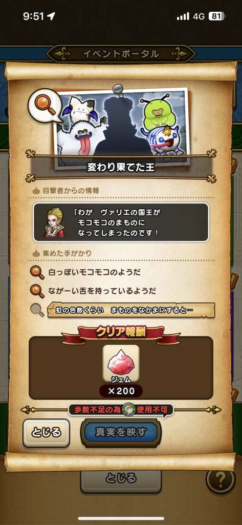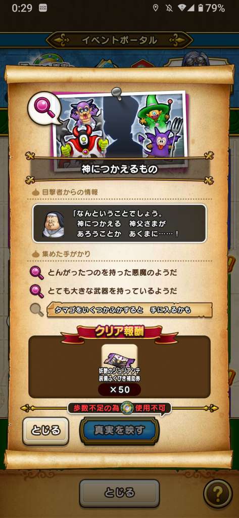 手がかりを集めて、まものに変えられた人々を解放していくイベントです。