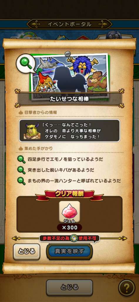 手に入れたヒントにそって、該当するモンスターを「選択する」必要があるよ!
