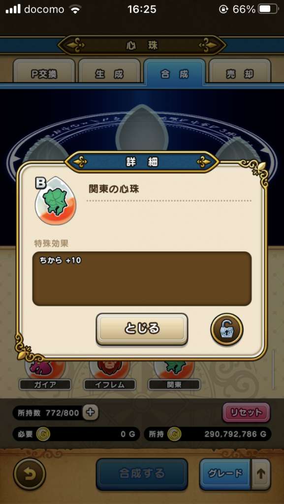 こちら通常の心珠の合成や生成でも入手できます!今いる地方のご当地心珠のみですが。