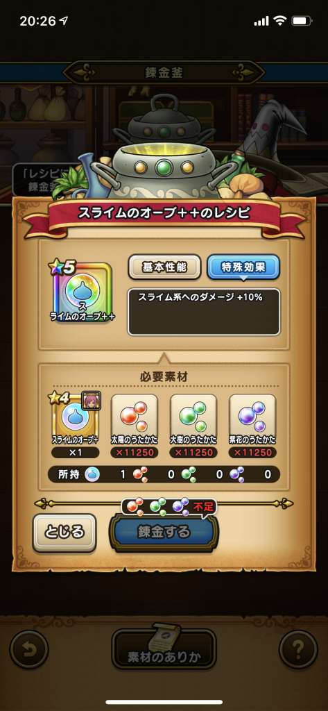 錬金百式「スライム編」攻略と弱点・1ターン討伐|素材のドロップ数