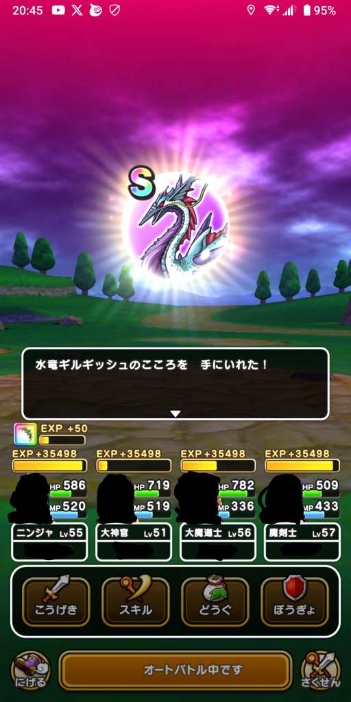 30戦して、2戦だけ全く入らず、壊滅。せかいじゅの葉やしずく使っても壊滅ループなので、こういうときは、諦めて再戦すべきだと知りました。