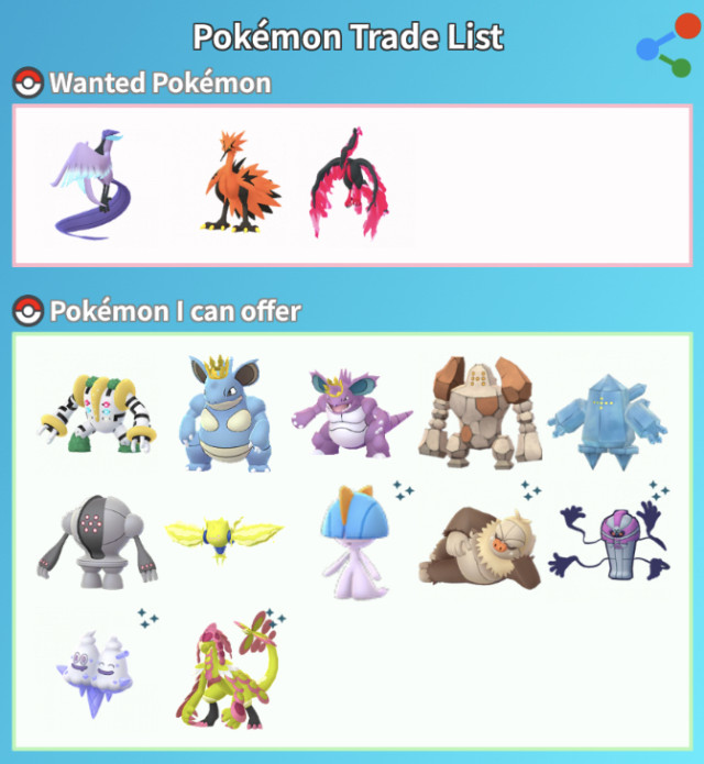 Desperatly looking for galarian birds my code is 878672020248 and if you can and want to do that trade pls comment What do you want to trade. Thanks already