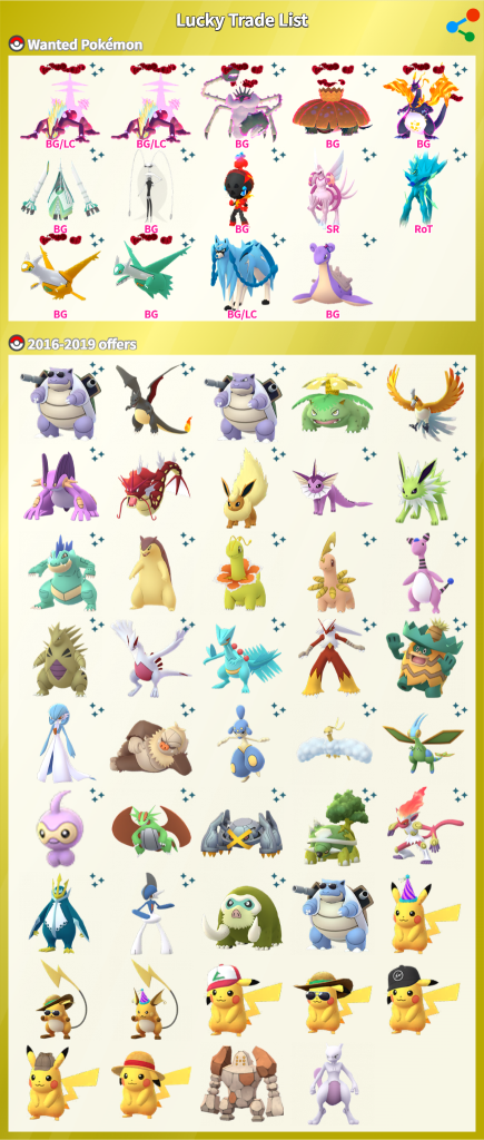 Note: The limit for guaranteed lucky trades is 35; so, if any trainers exceed over 35 uses for lucky Pokémon, neither of two trainers will not have their Lucky Pokémon.