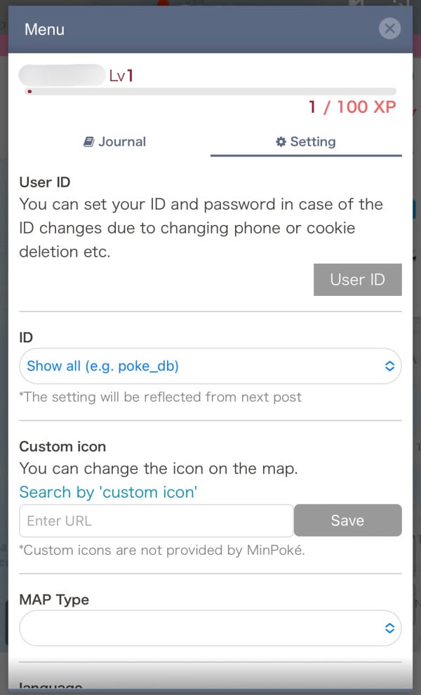 | Custom Icon | Specify the URL for Pokémon images to display on the map. *For details, see here* |