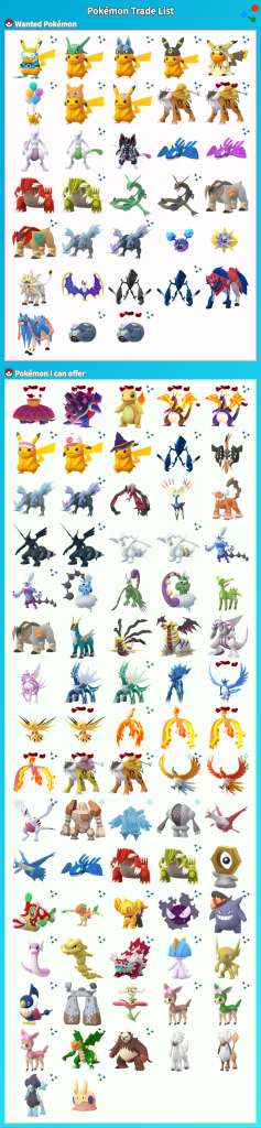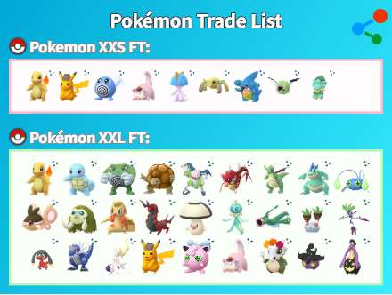 I have these XXL, XXS shiny and costumes for trade. Dm me