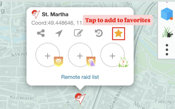 When you select a Gym hosting a raid and tap the “Star Icon” at the top right of the balloon, you can mark that Gym as a favorite.