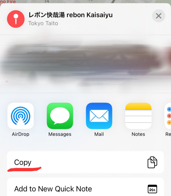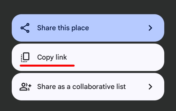 Follow the Android or iOS steps above and tap the share button to copy the string containing the coordinates.