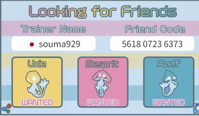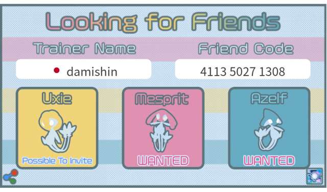 Lake trio(Uxie, Azelf, Mesprit) A recruitment image creation tool for recruiting raid friends.