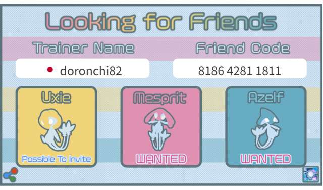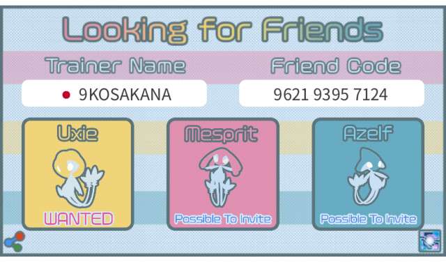 Lake trio(Uxie, Azelf, Mesprit) A recruitment image creation tool for recruiting raid friends.