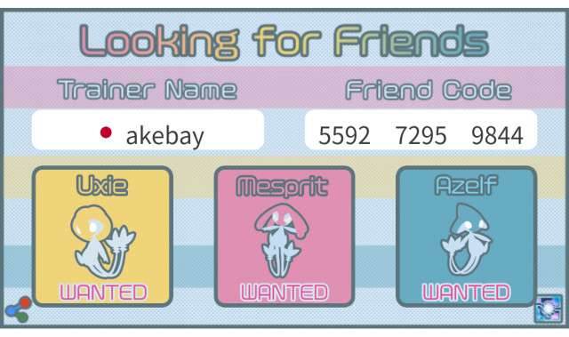 Lake trio(Uxie, Azelf, Mesprit) A recruitment image creation tool for recruiting raid friends.