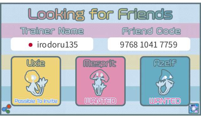 Lake trio(Uxie, Azelf, Mesprit) A recruitment image creation tool for recruiting raid friends.