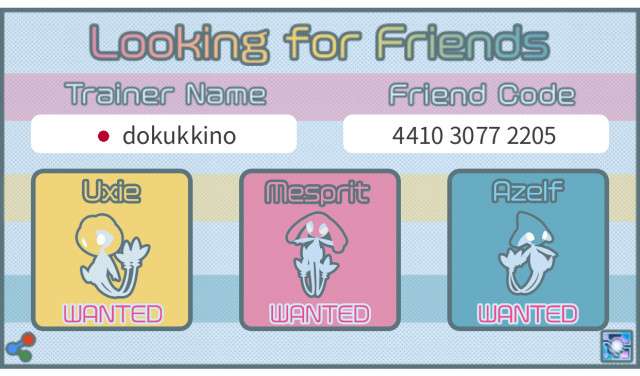 Lake trio(Uxie, Azelf, Mesprit) A recruitment image creation tool for recruiting raid friends.