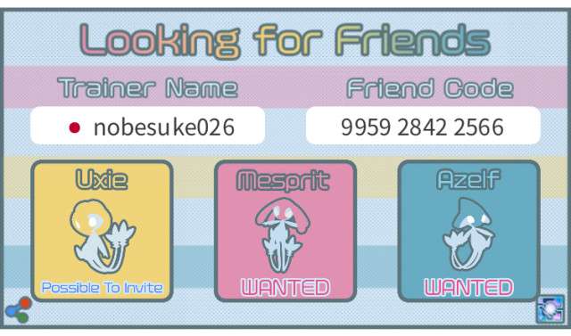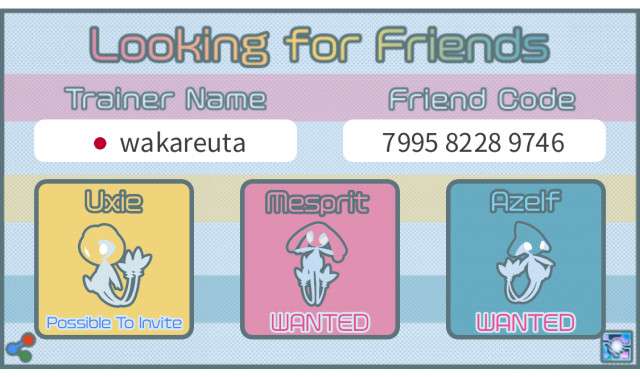 Lake trio(Uxie, Azelf, Mesprit) A recruitment image creation tool for recruiting raid friends.