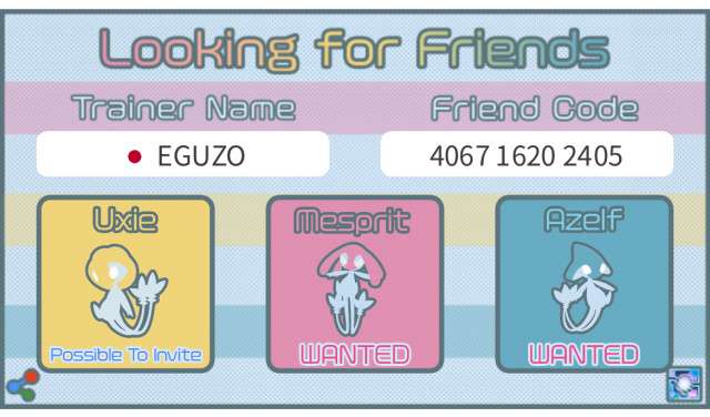 Lake trio(Uxie, Azelf, Mesprit) A recruitment image creation tool for recruiting raid friends.