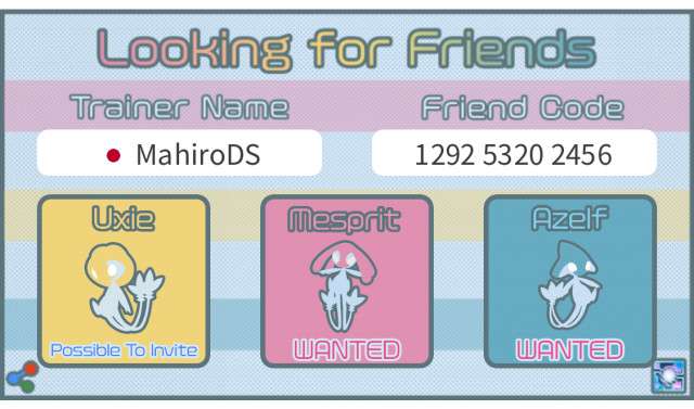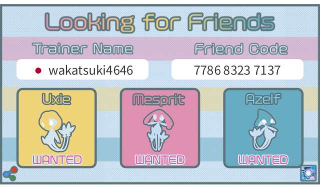 Lake trio(Uxie, Azelf, Mesprit) A recruitment image creation tool for recruiting raid friends.
