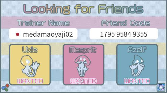 Lake trio(Uxie, Azelf, Mesprit) A recruitment image creation tool for recruiting raid friends.