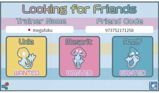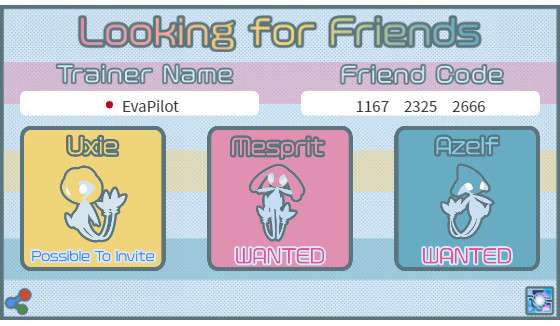 Those who invite Mesprit and Azelf Please apply for friends! Invite Uxie