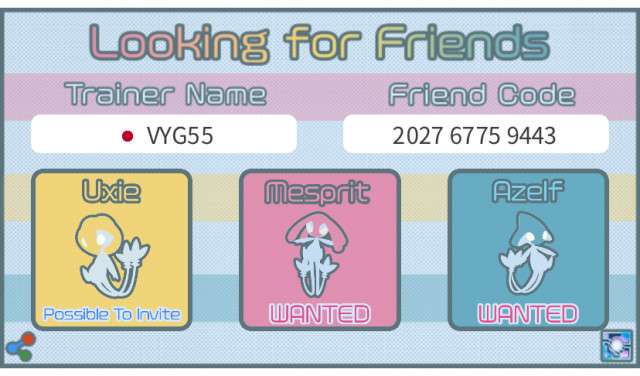 Lake trio(Uxie, Azelf, Mesprit) A recruitment image creation tool for recruiting raid friends.