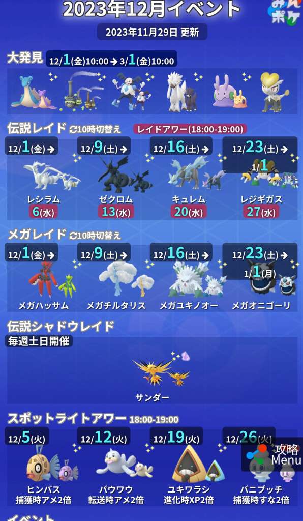レイドボスの開催日程(最新版)
