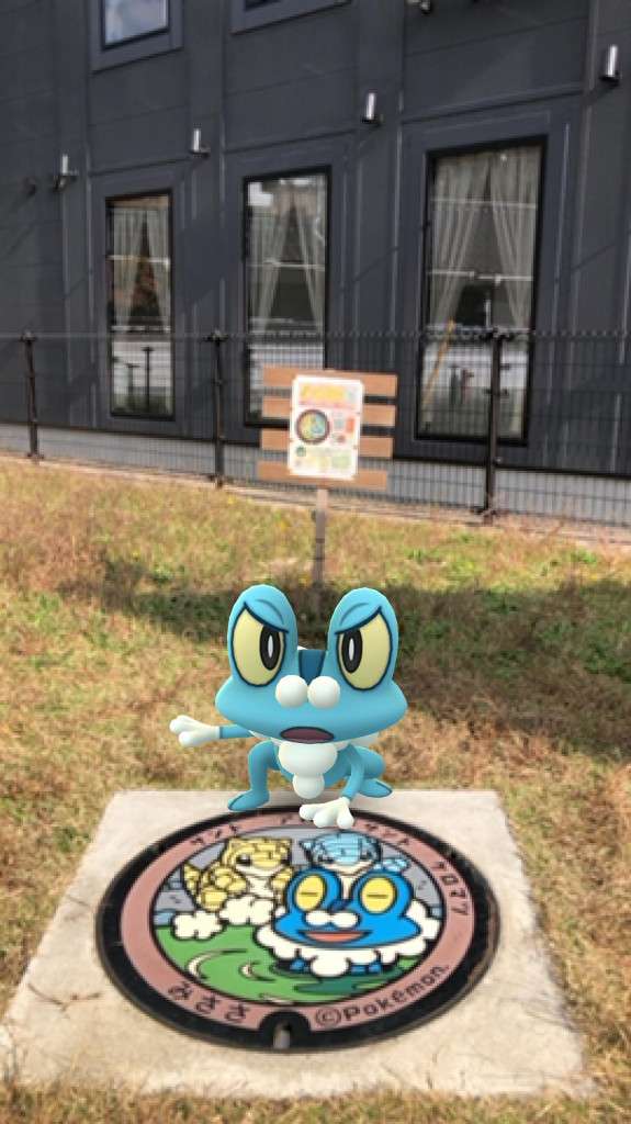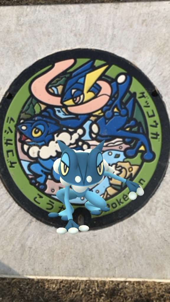 ゲコガシラとのツーショット。三朝のケロマツと併せて、ポケふた進化完了です😄