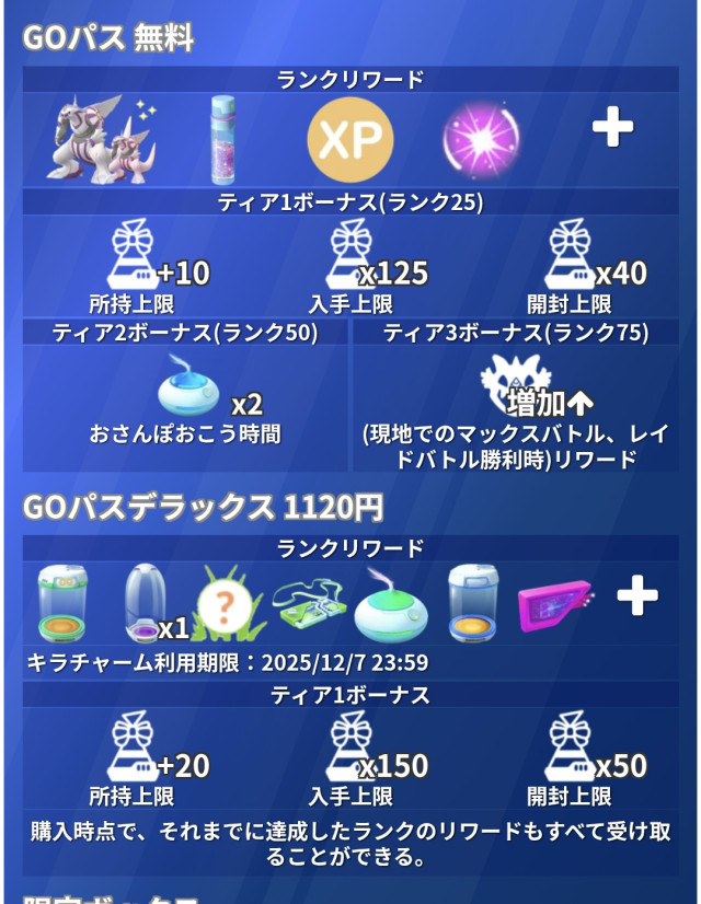 TL別XP・リワード