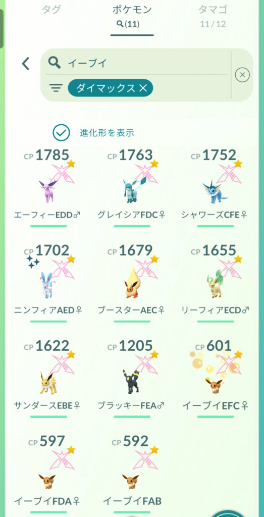 入手別最低個体値一覧