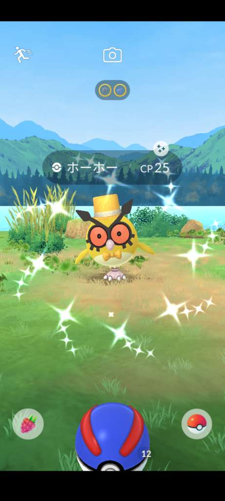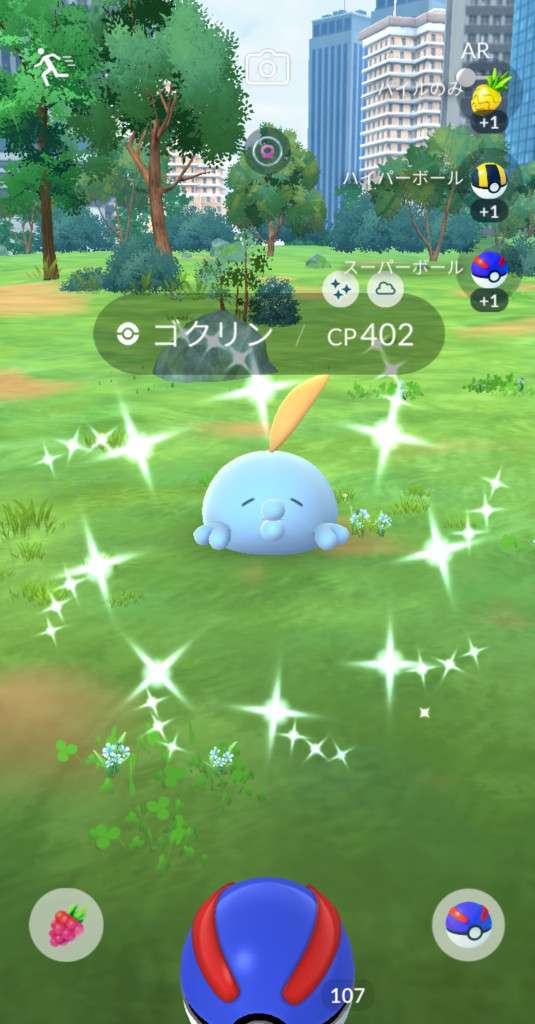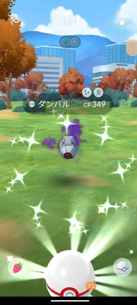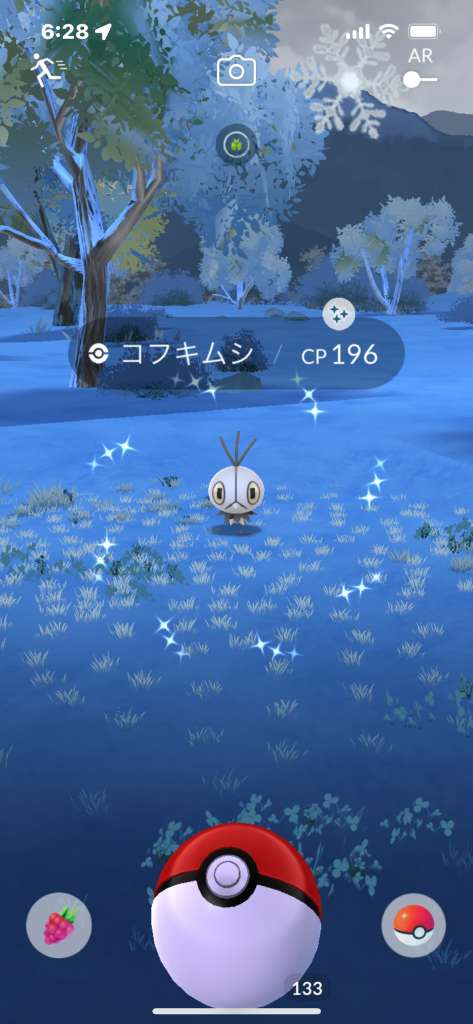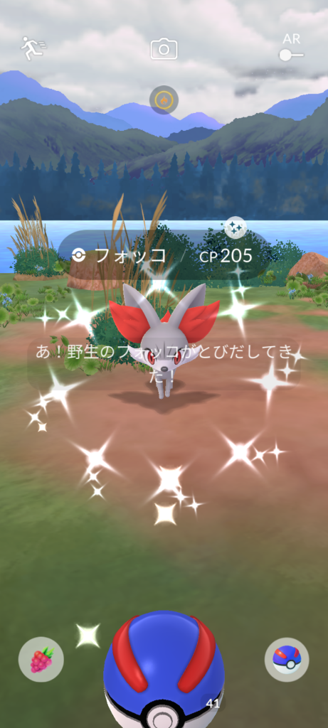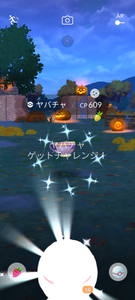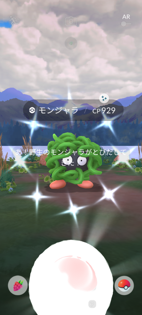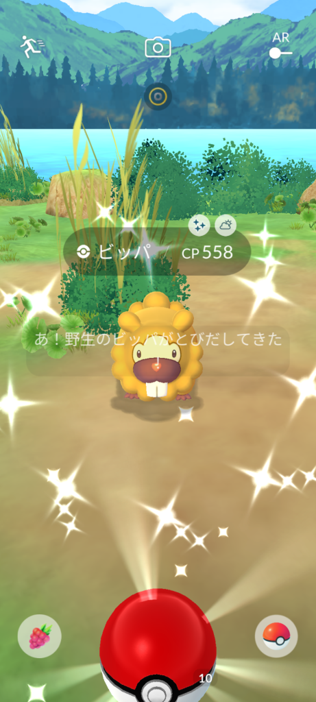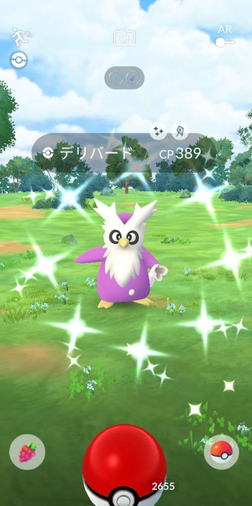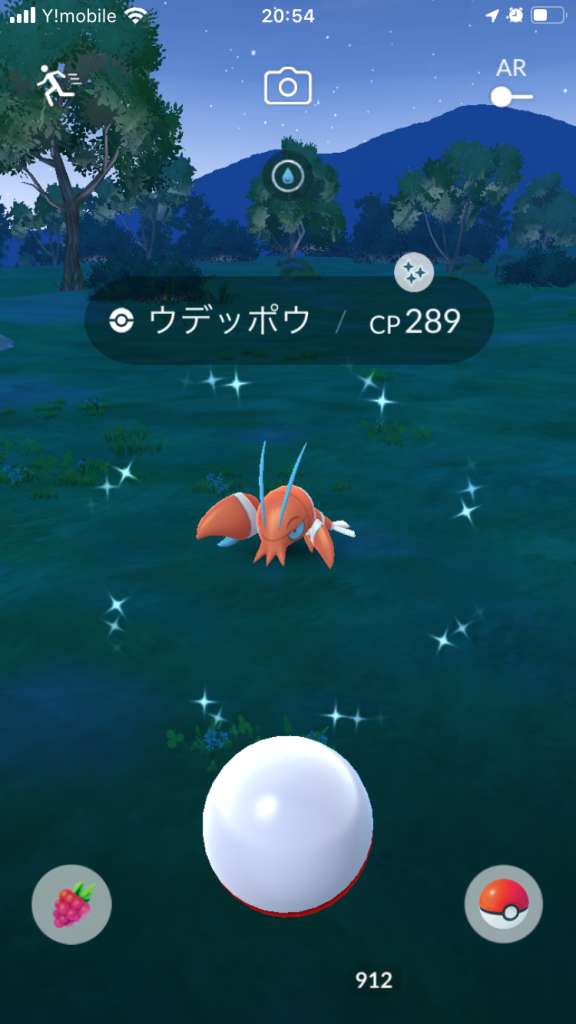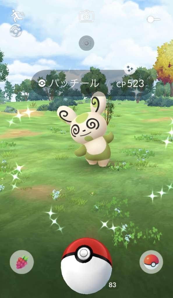・色違い出現したら、右上「AR+」のON・OFF切り替えで、タイミング良く写るまで何回も挑戦