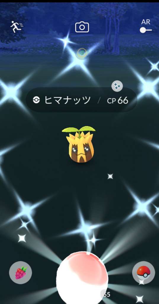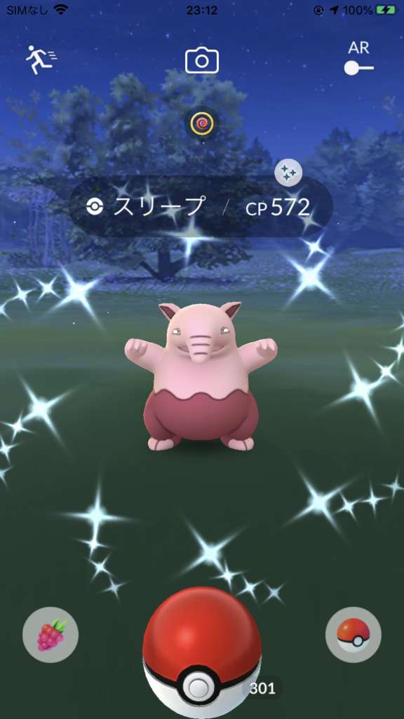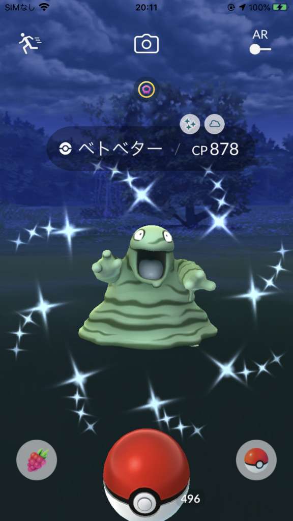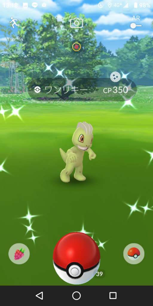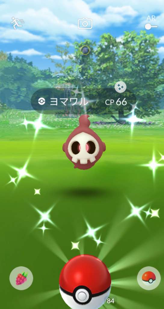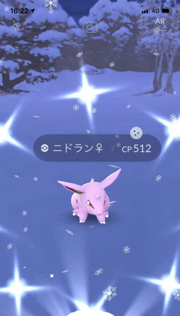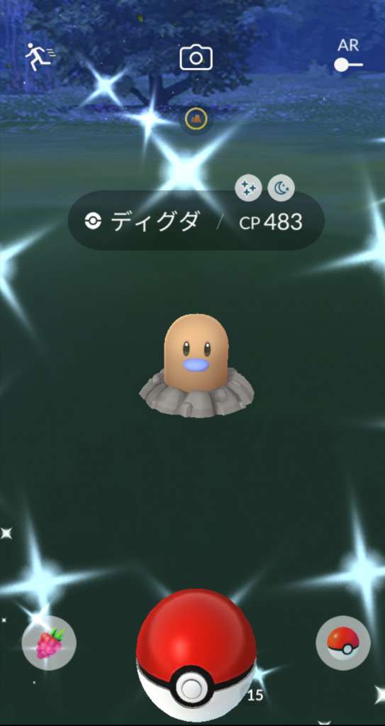 ・色違い出現したら、右上「AR+」のON・OFF切り替えで、タイミング良く写るまで何回も挑戦