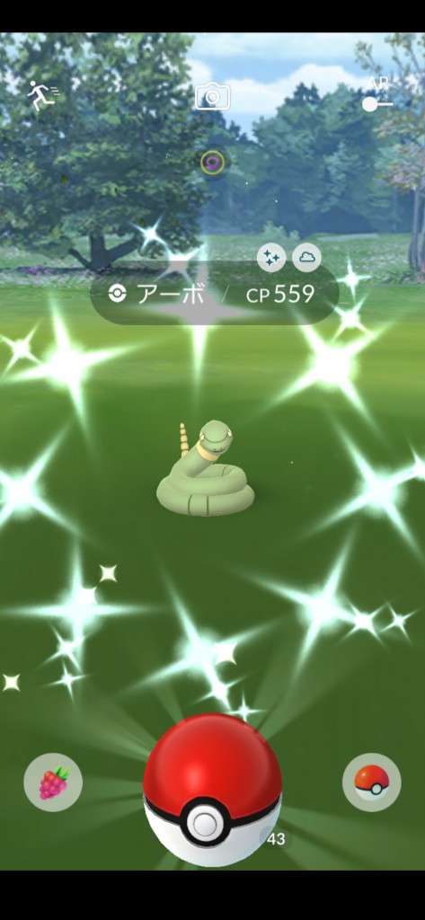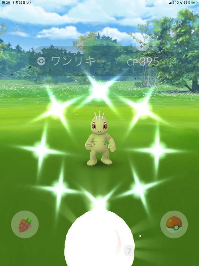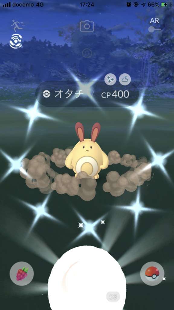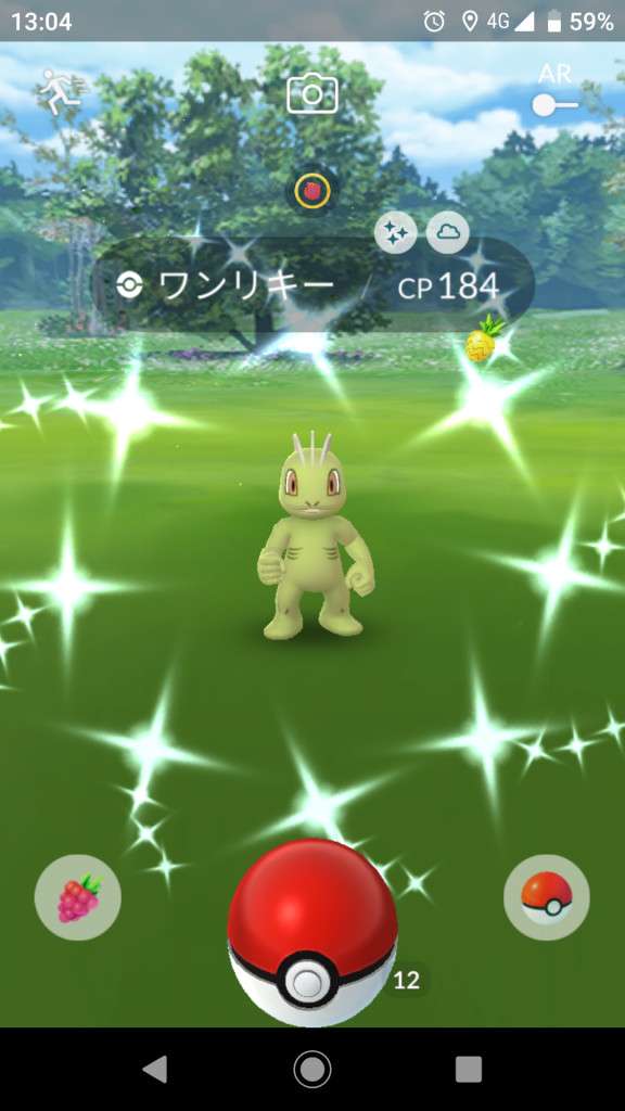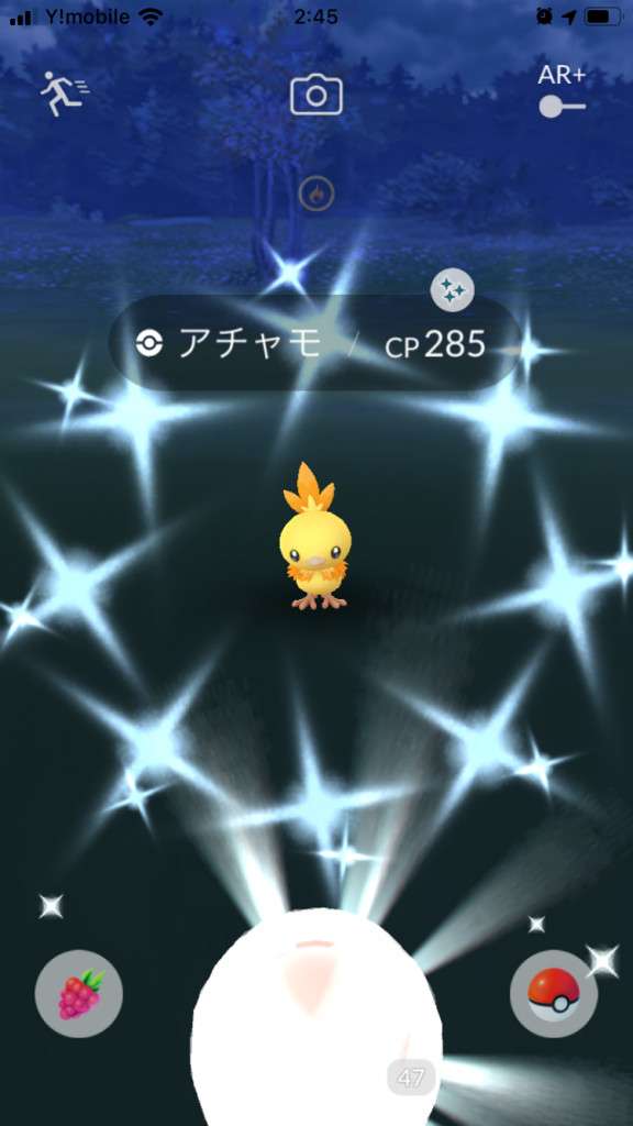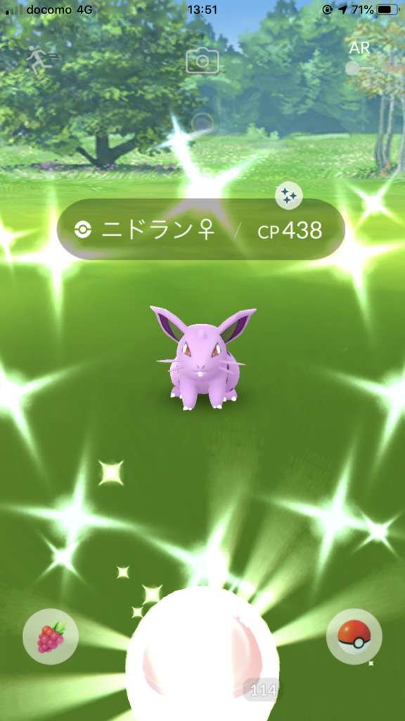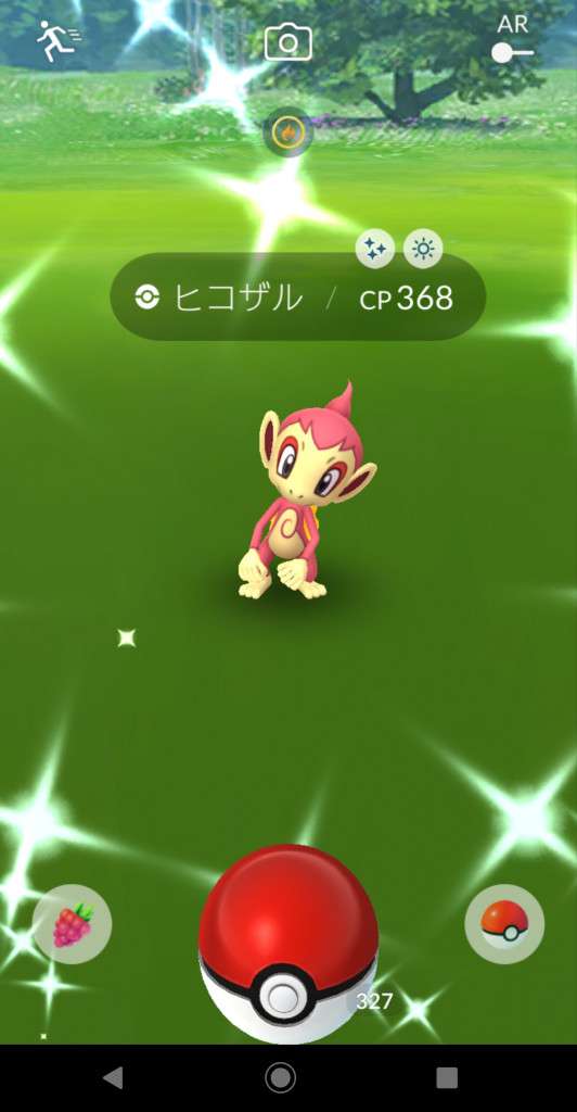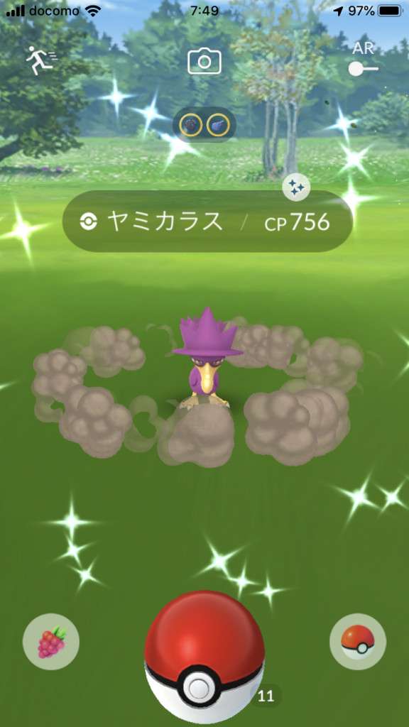 ・色違い出現したら、右上「AR+」のON・OFF切り替えで、タイミング良く写るまで何回も挑戦