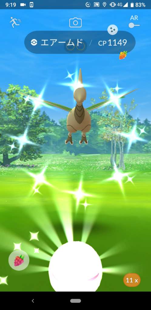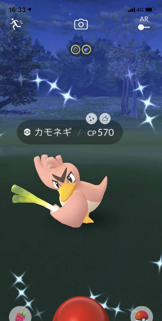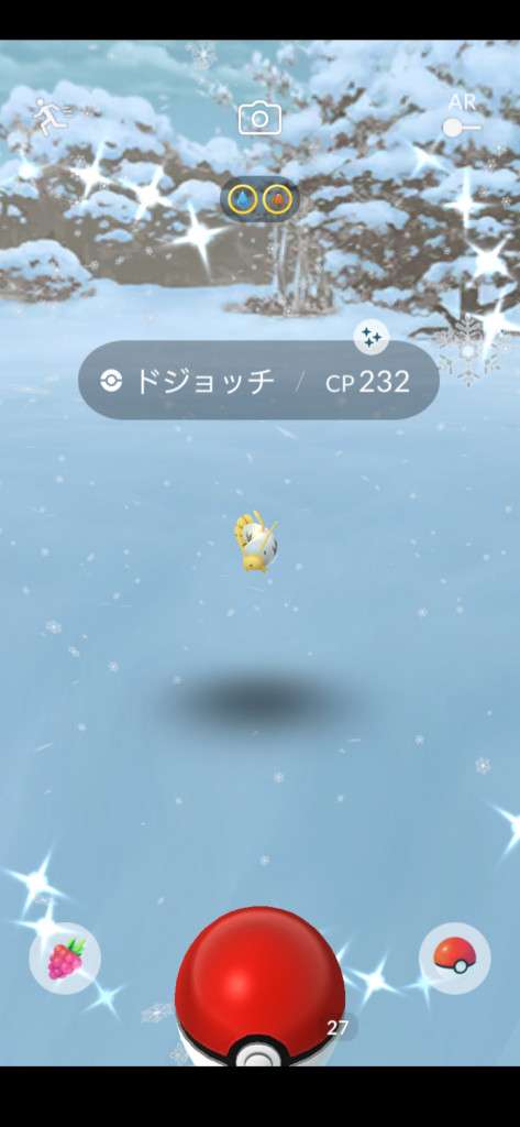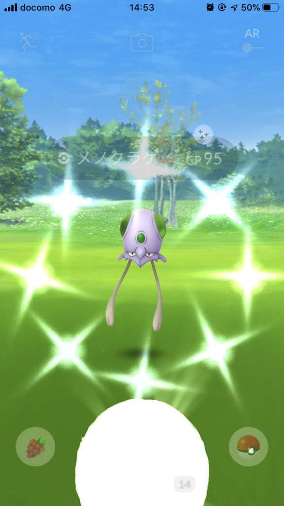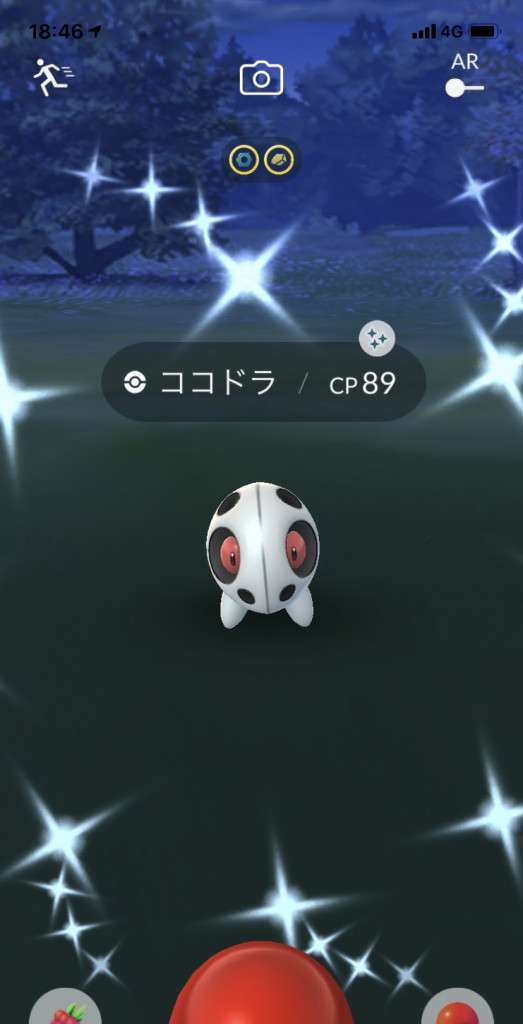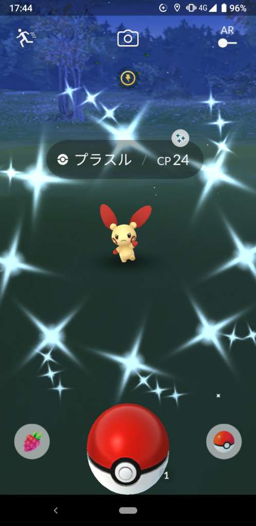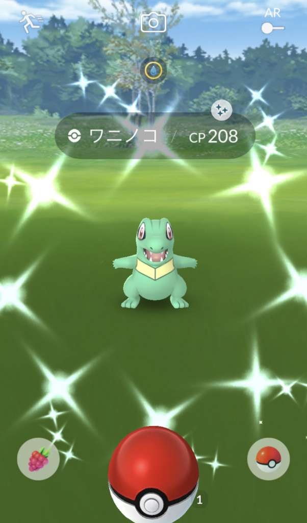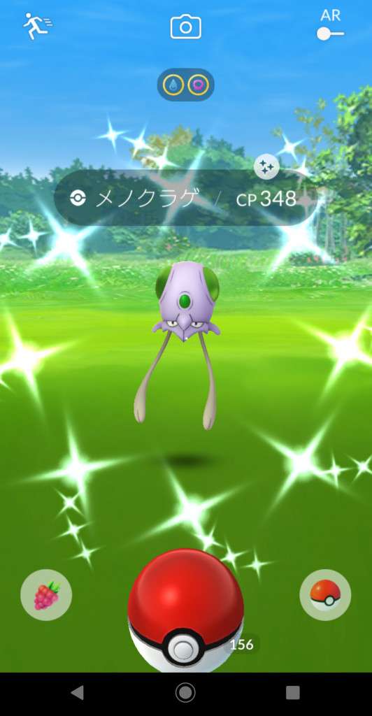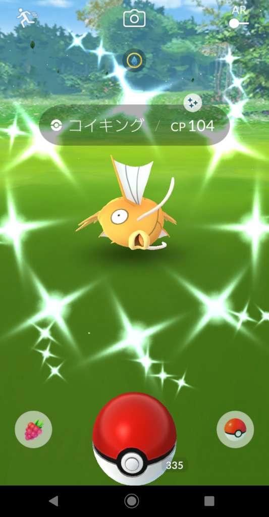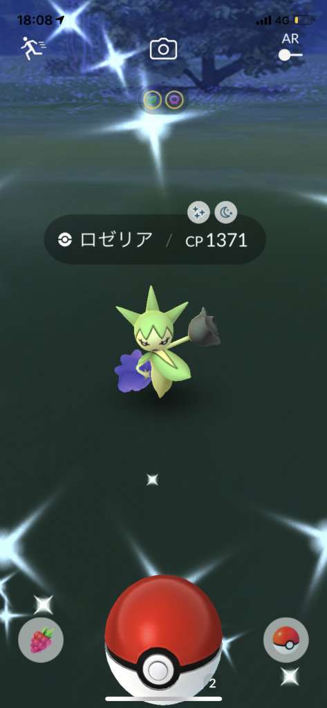 ・色違い出現したら、右上「AR+」のON・OFF切り替えで、タイミング良く写るまで何回も挑戦