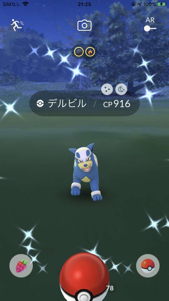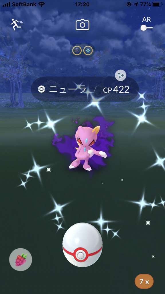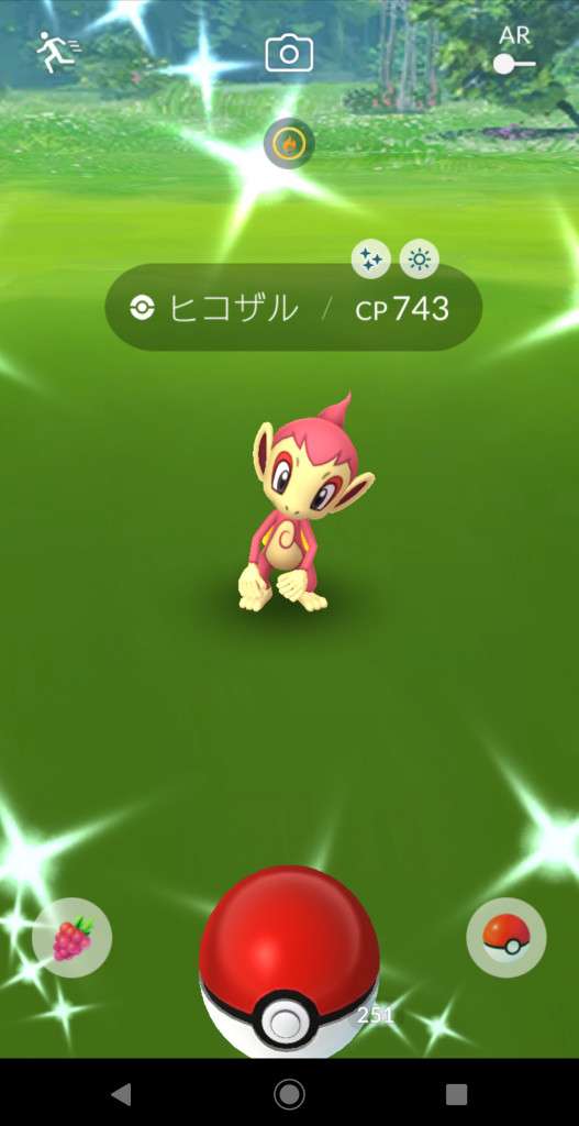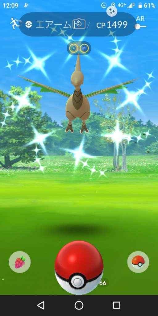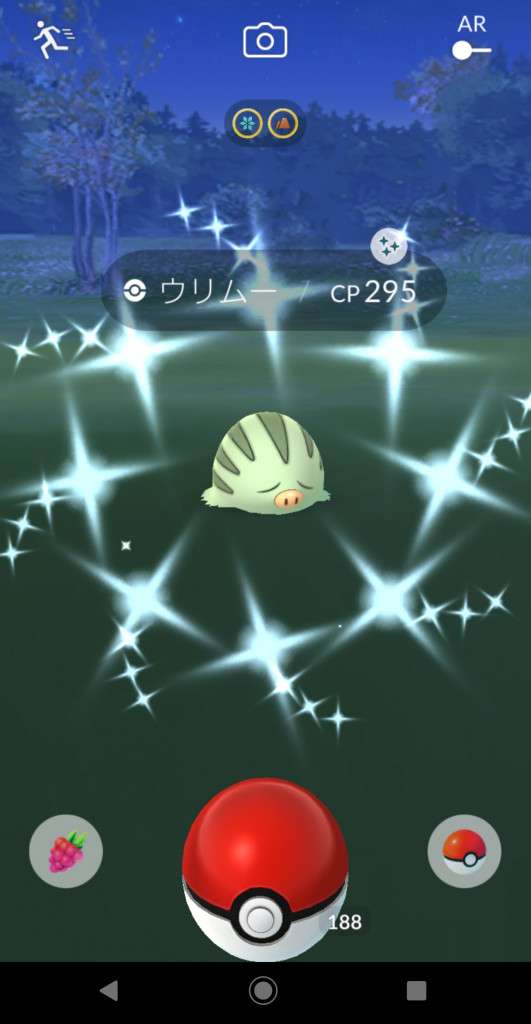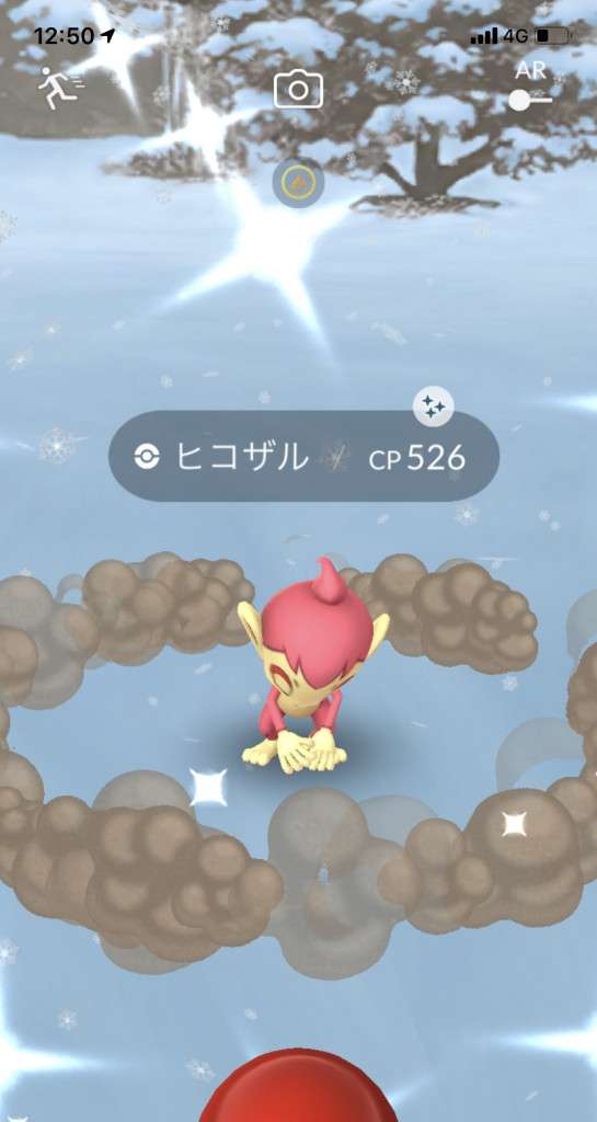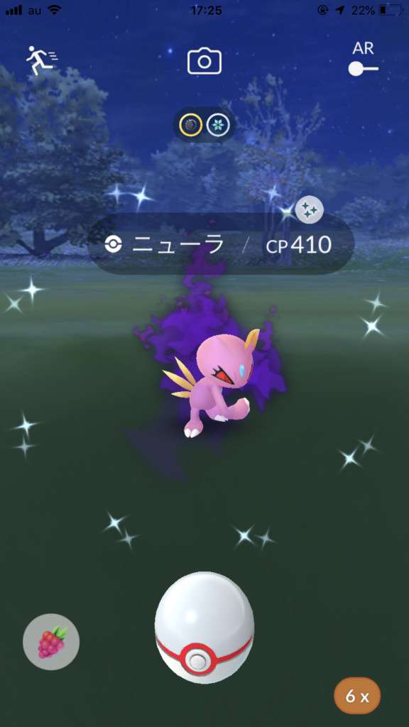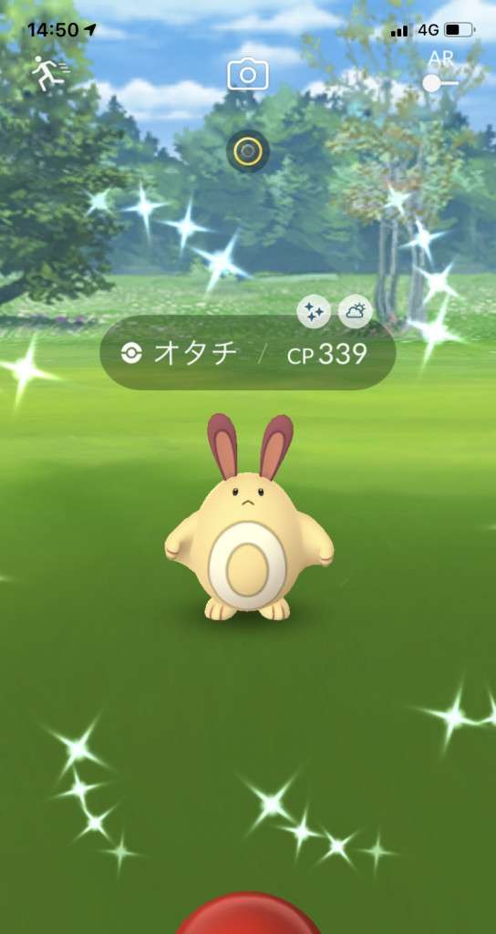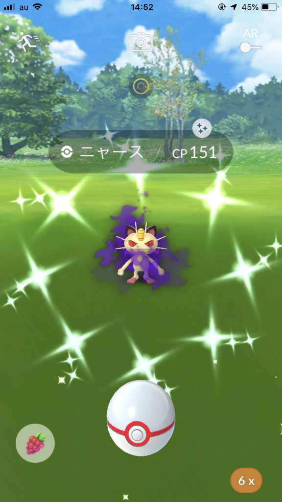 ・色違い出現したら、右上「AR+」のON・OFF切り替えで、タイミング良く写るまで何回も挑戦