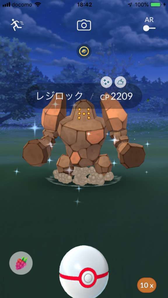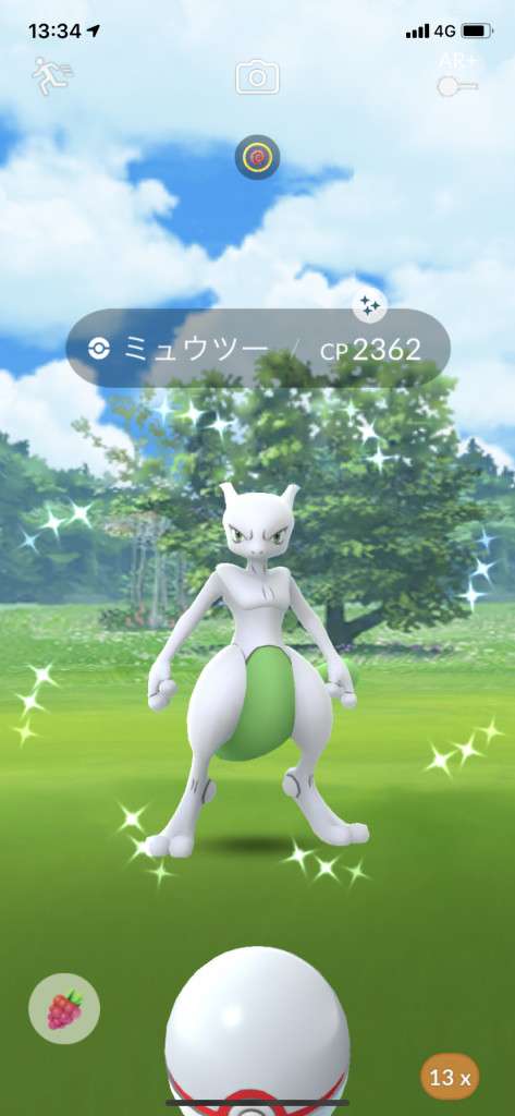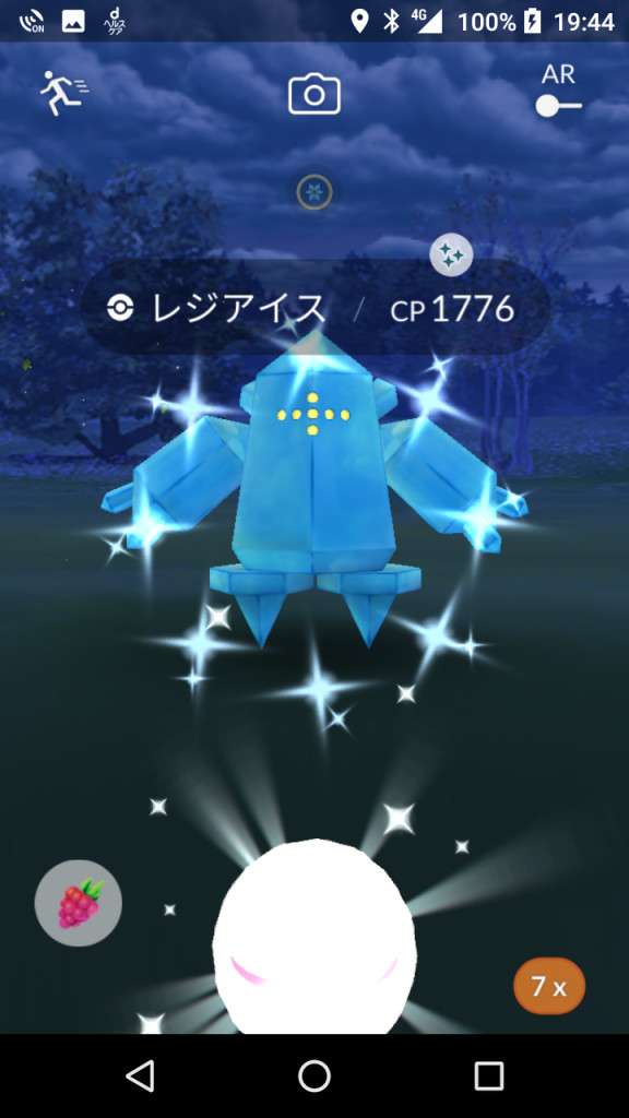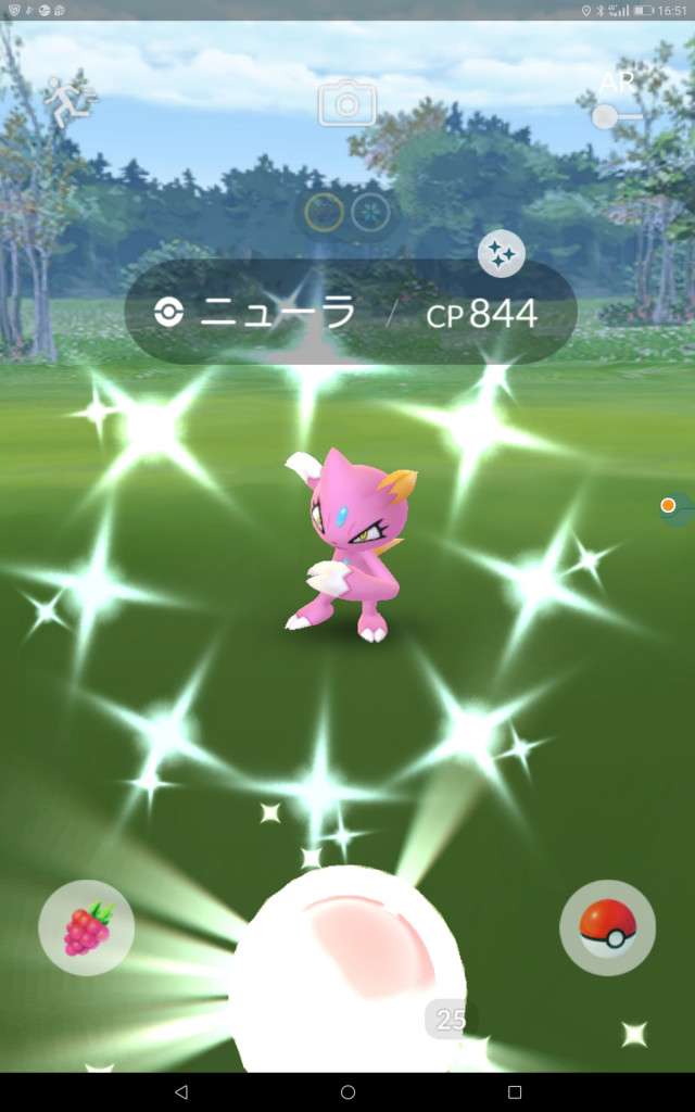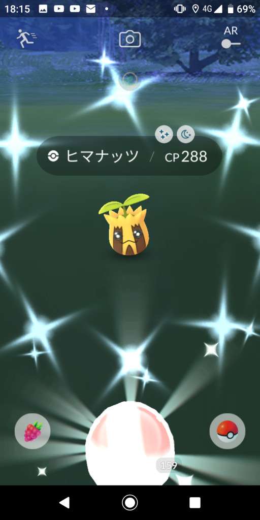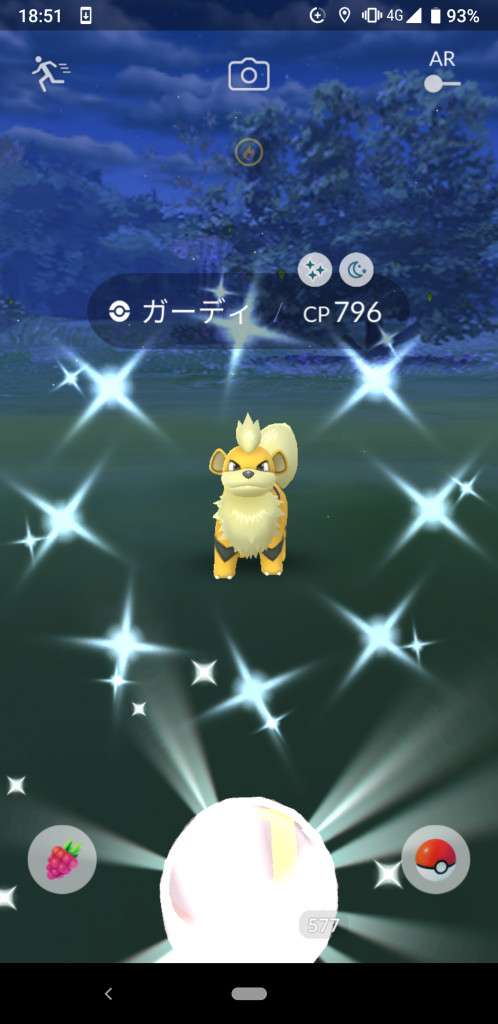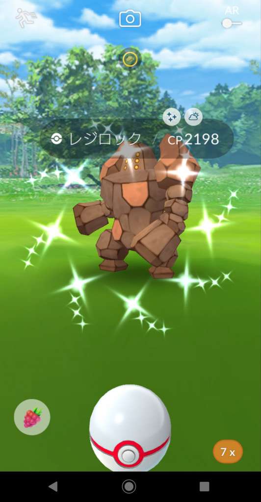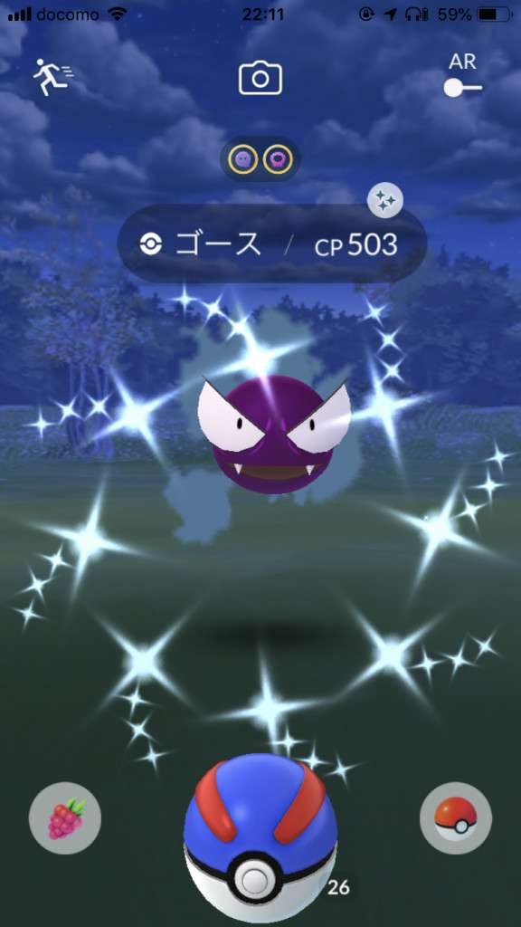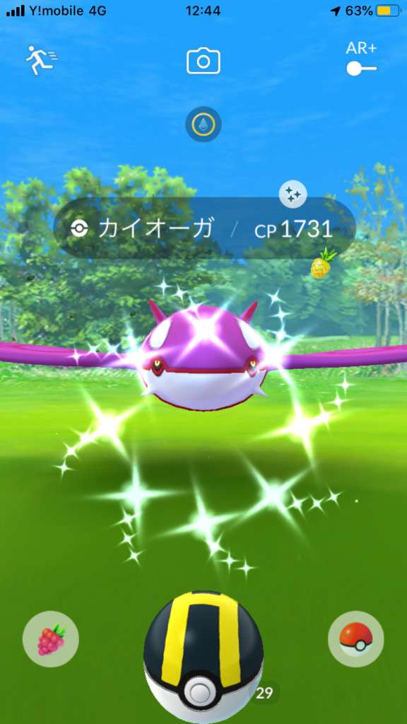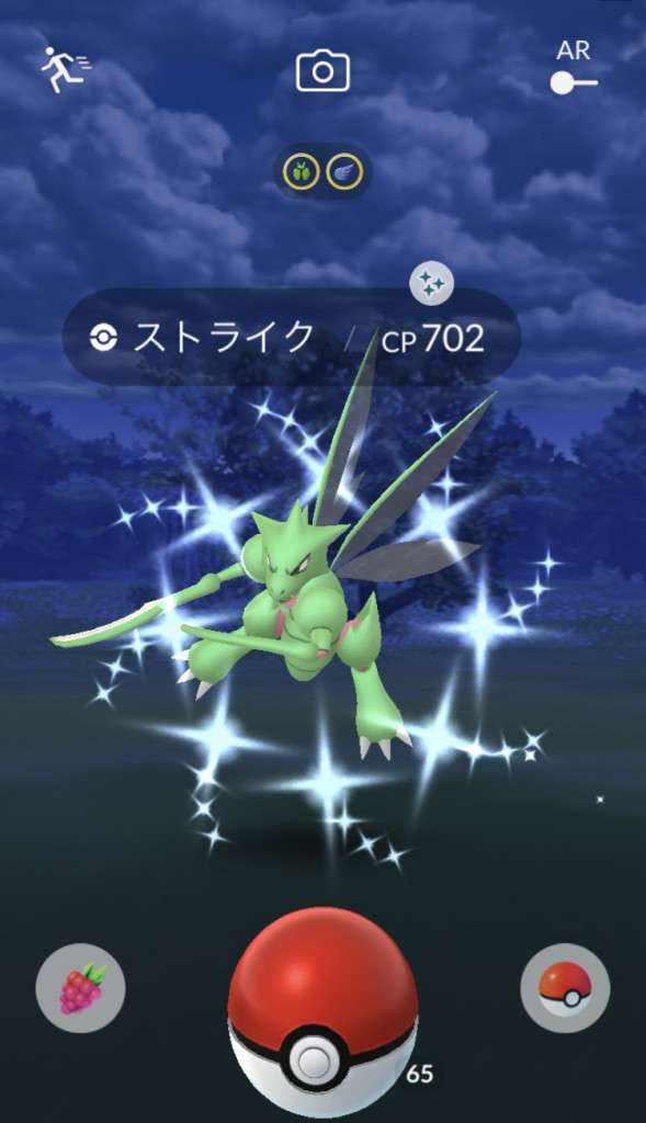 ・色違い出現したら、右上「AR+」のON・OFF切り替えで、タイミング良く写るまで何回も挑戦