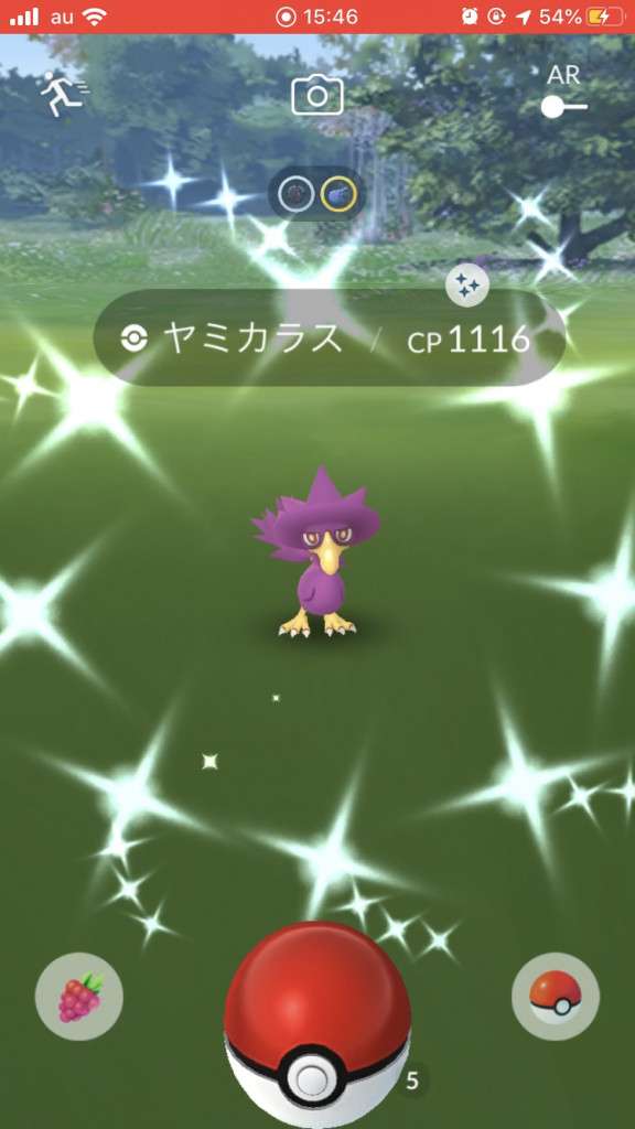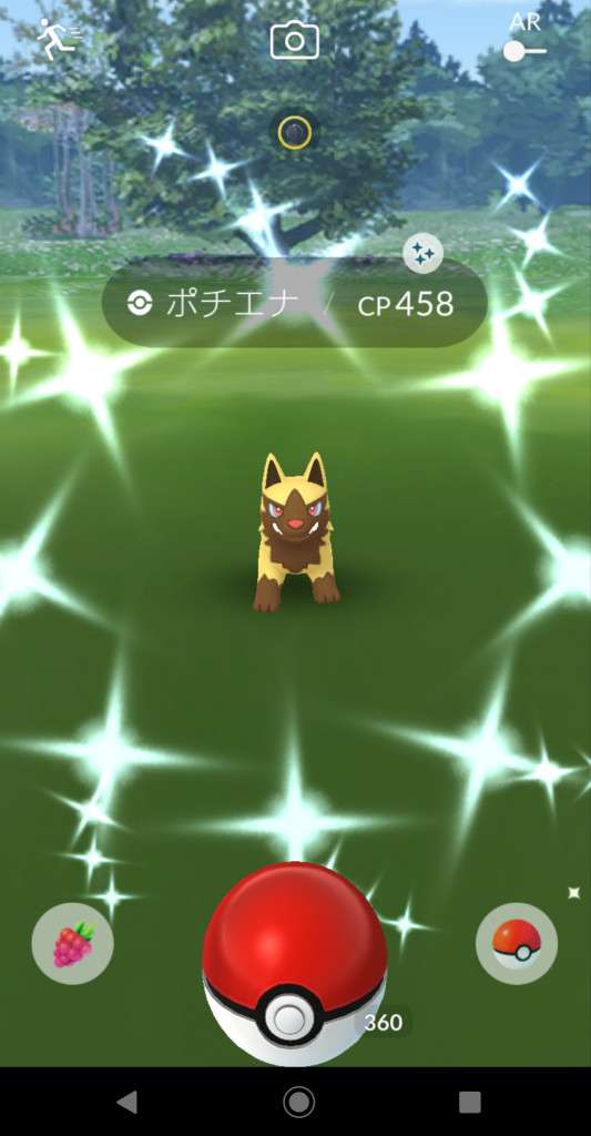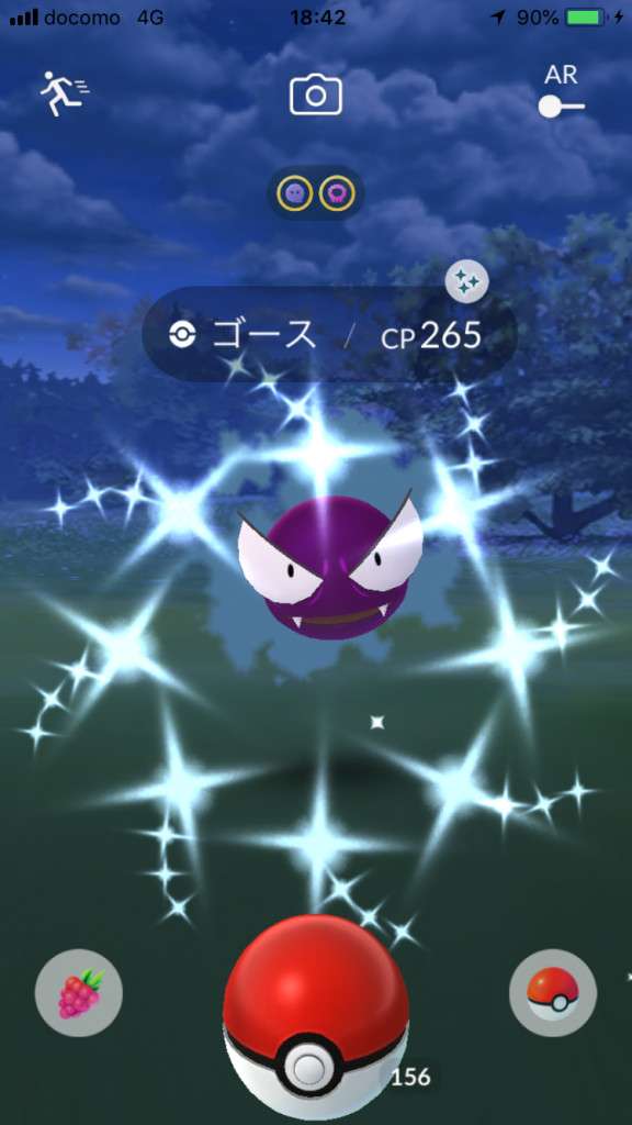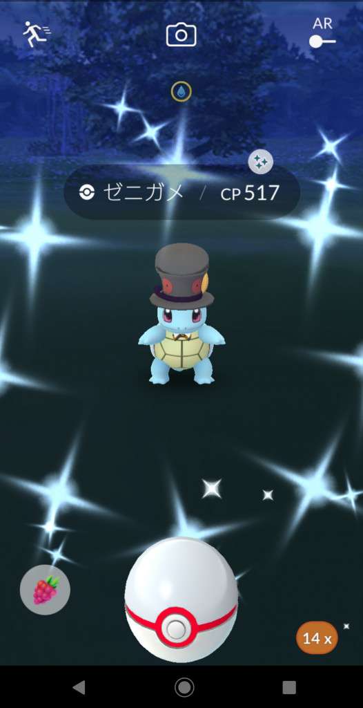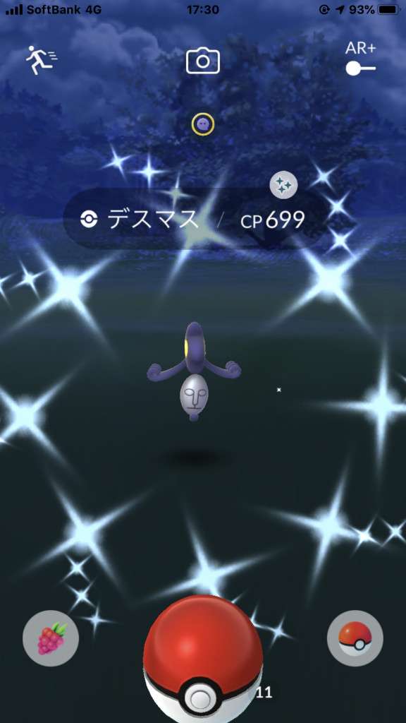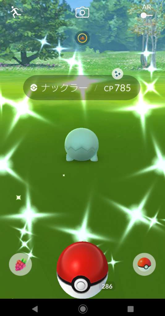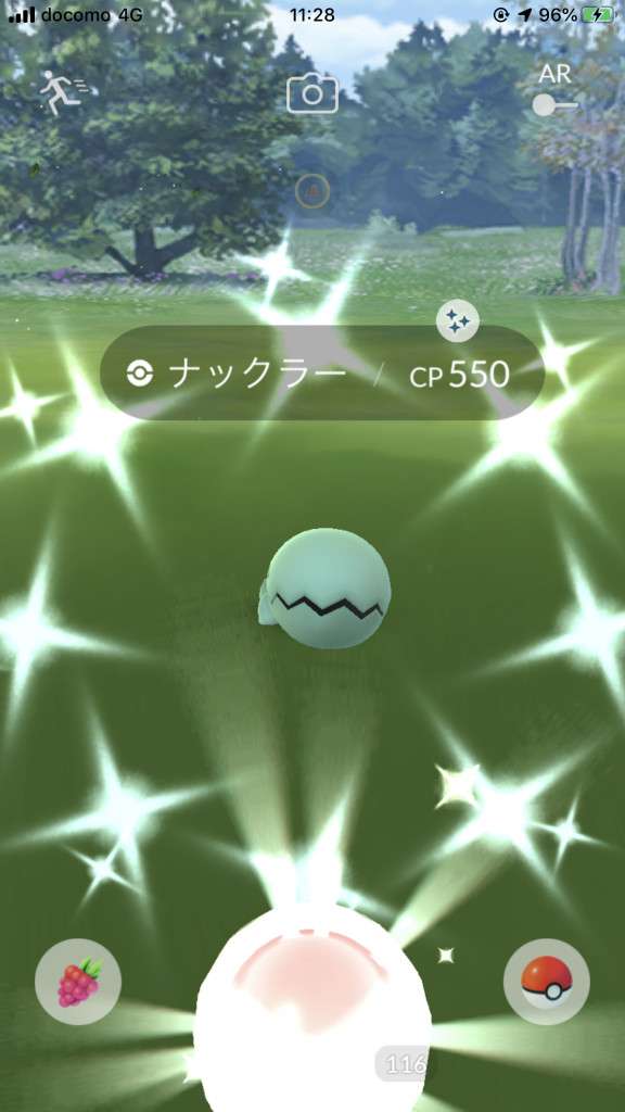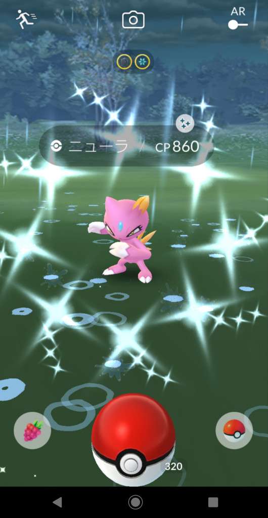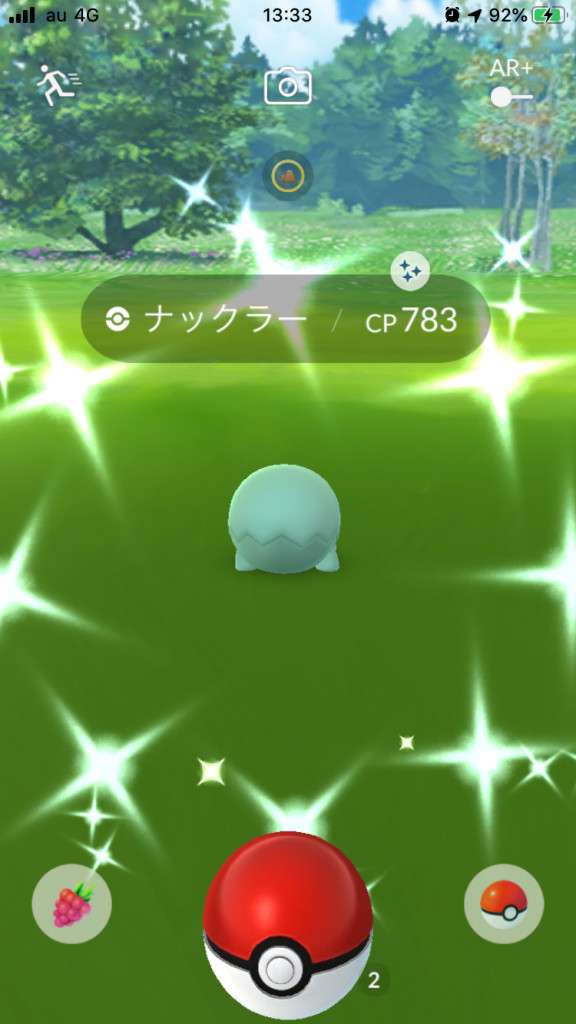 ・色違い出現したら、右上「AR+」のON・OFF切り替えで、タイミング良く写るまで何回も挑戦