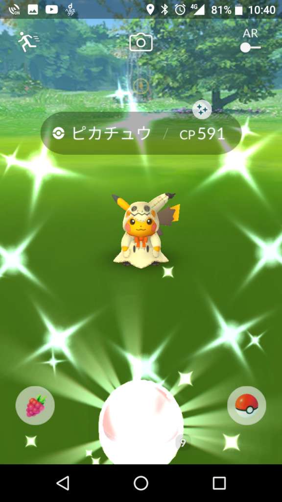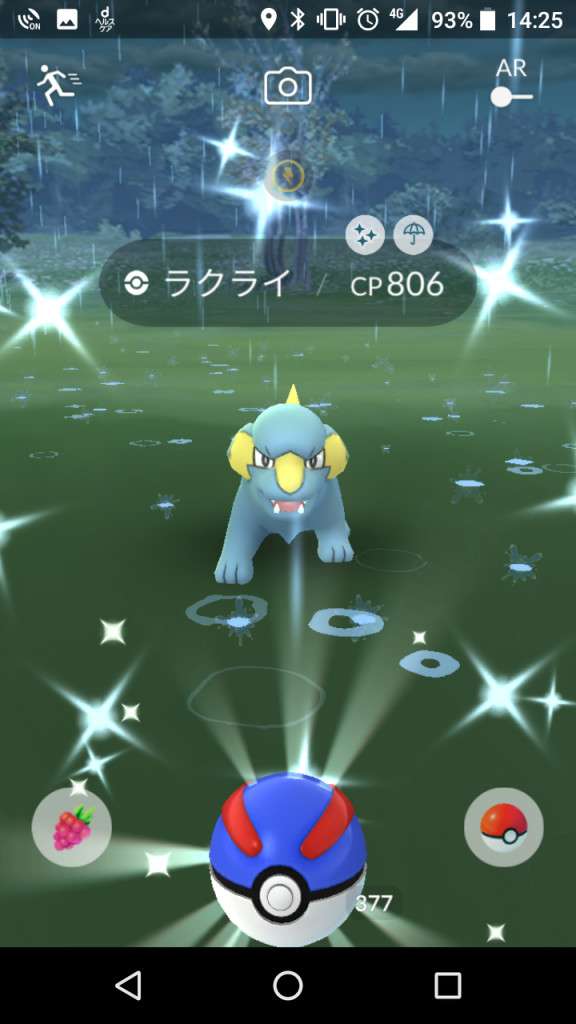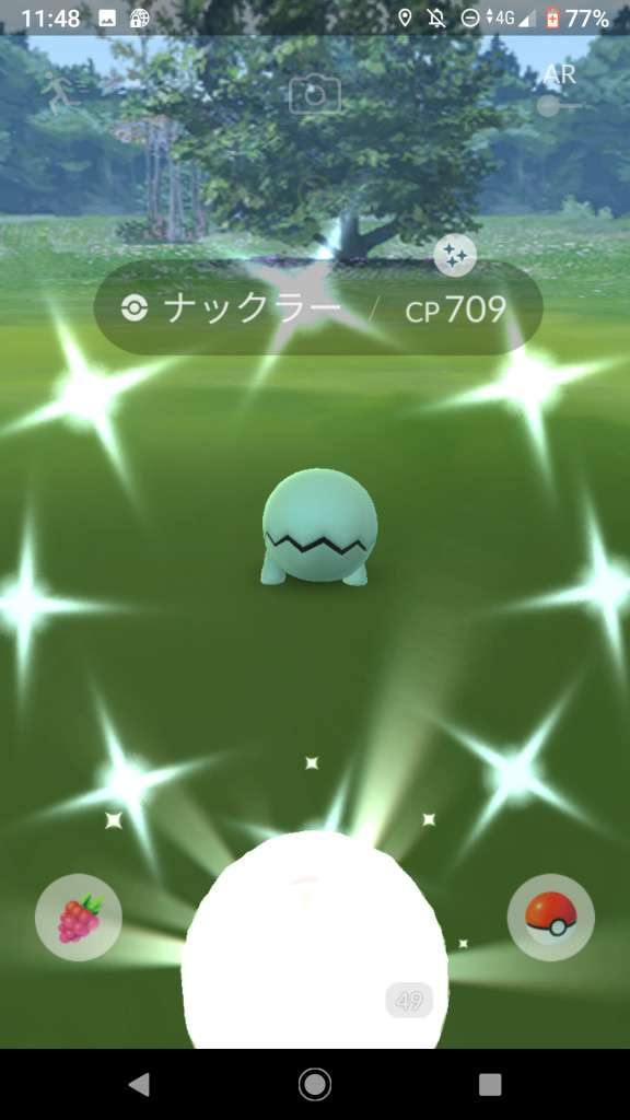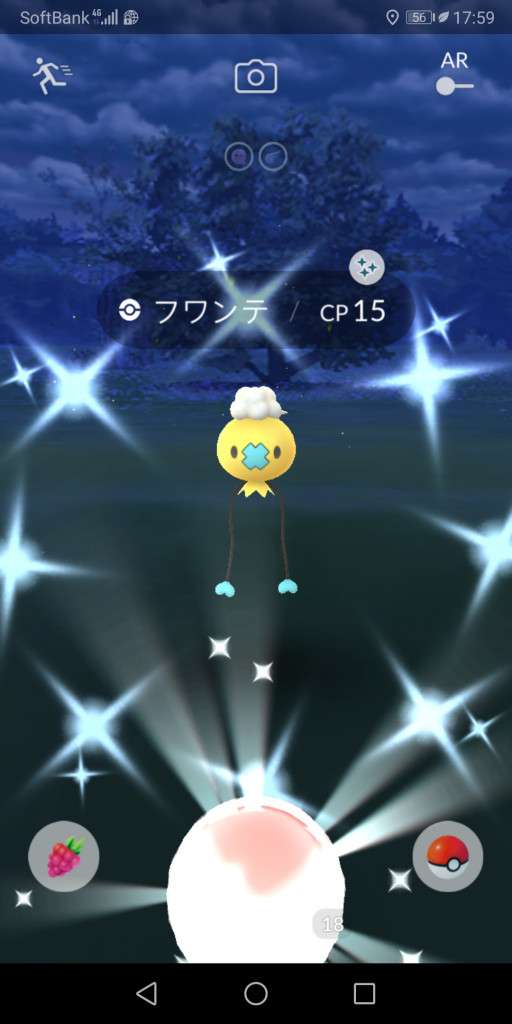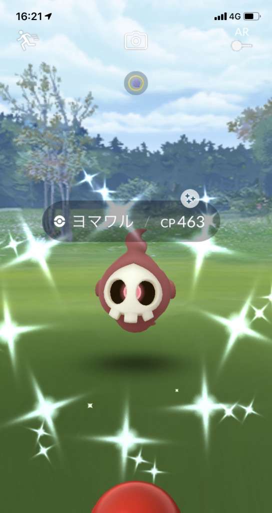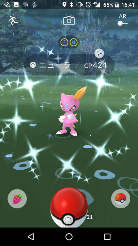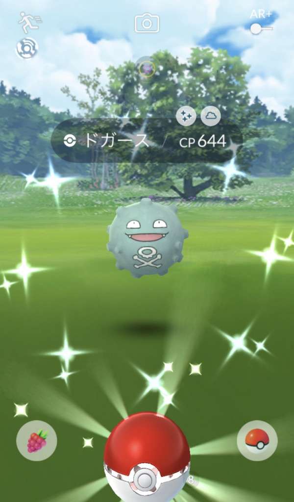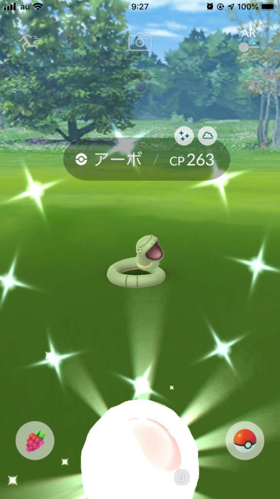 ・色違い出現したら、右上「AR+」のON・OFF切り替えで、タイミング良く写るまで何回も挑戦