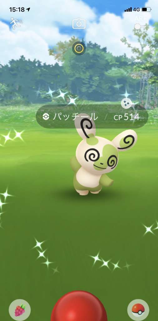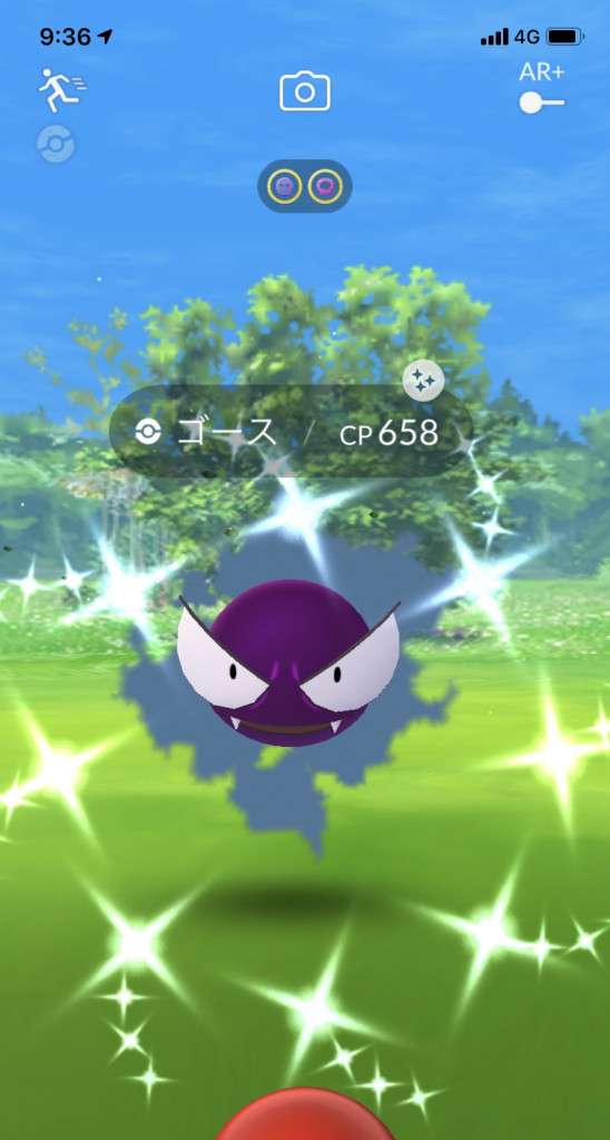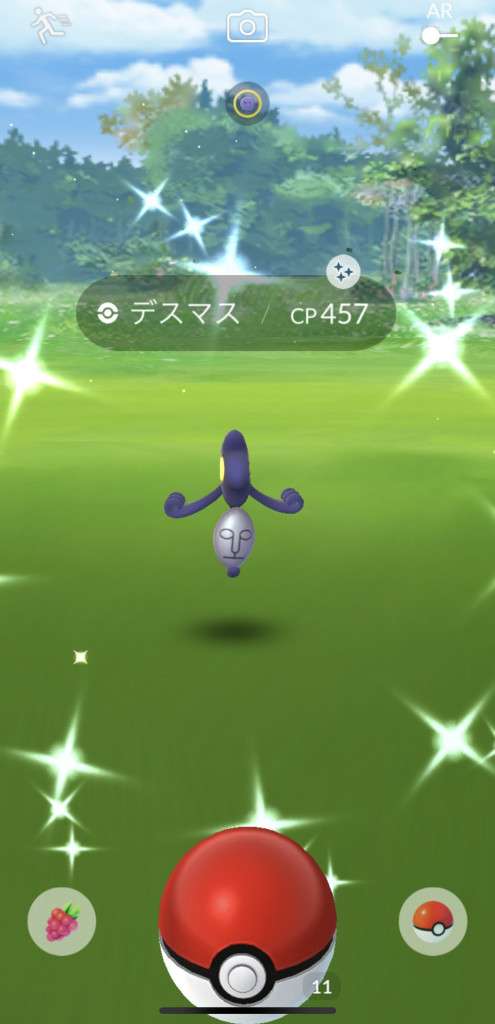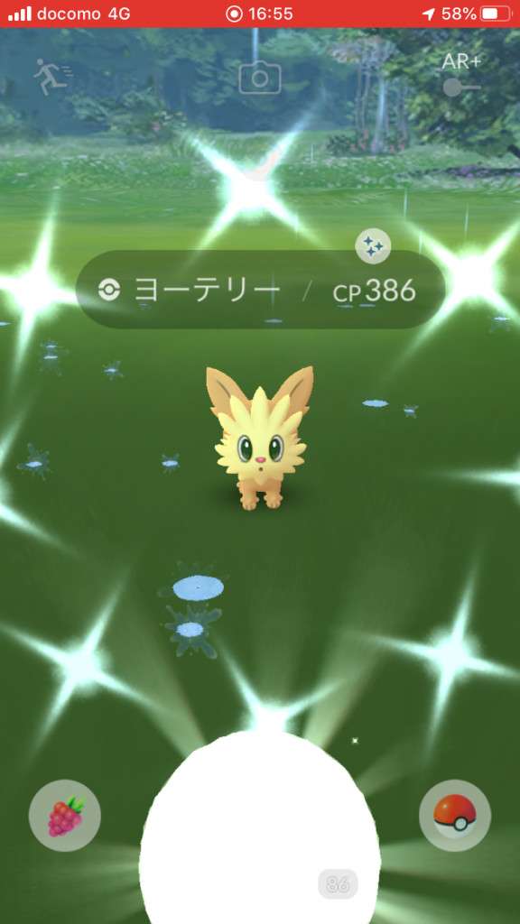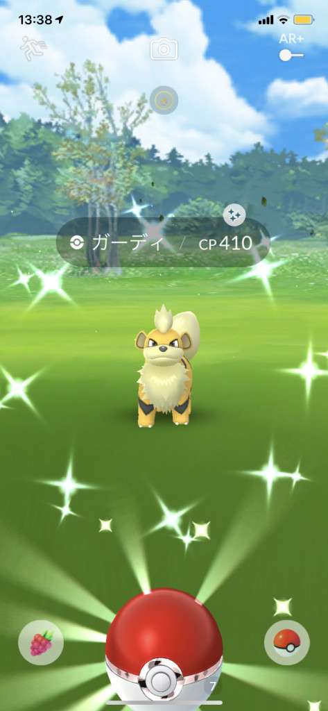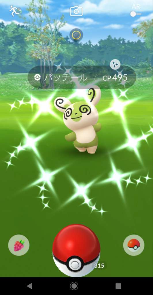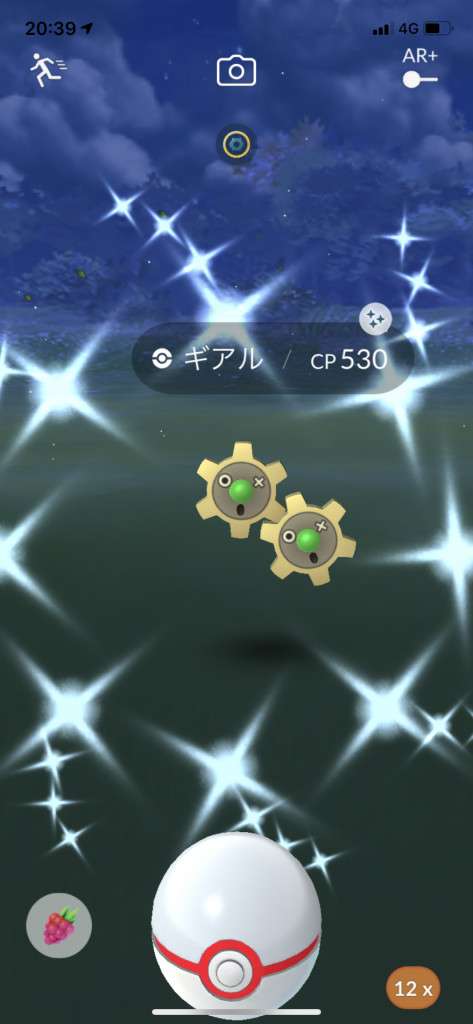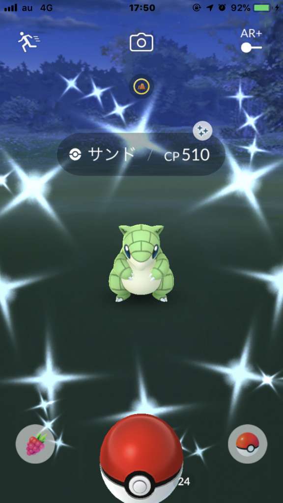 ・色違い出現したら、右上「AR+」のON・OFF切り替えで、タイミング良く写るまで何回も挑戦