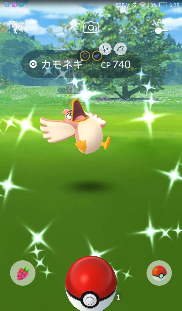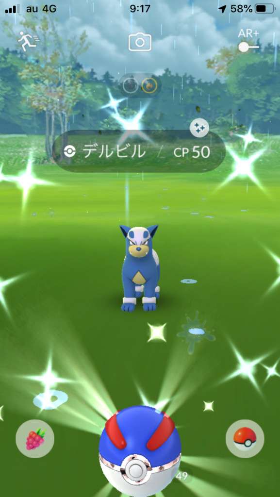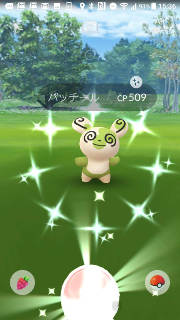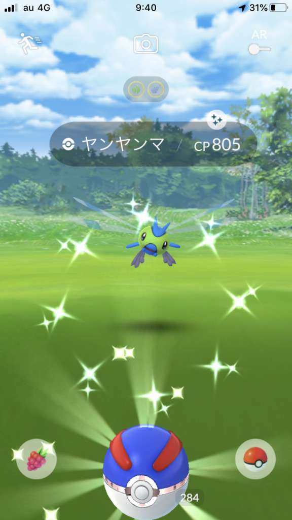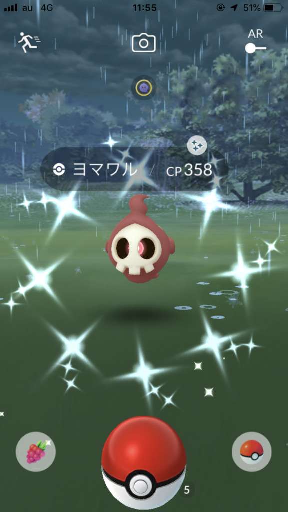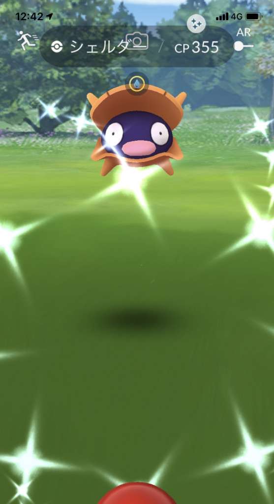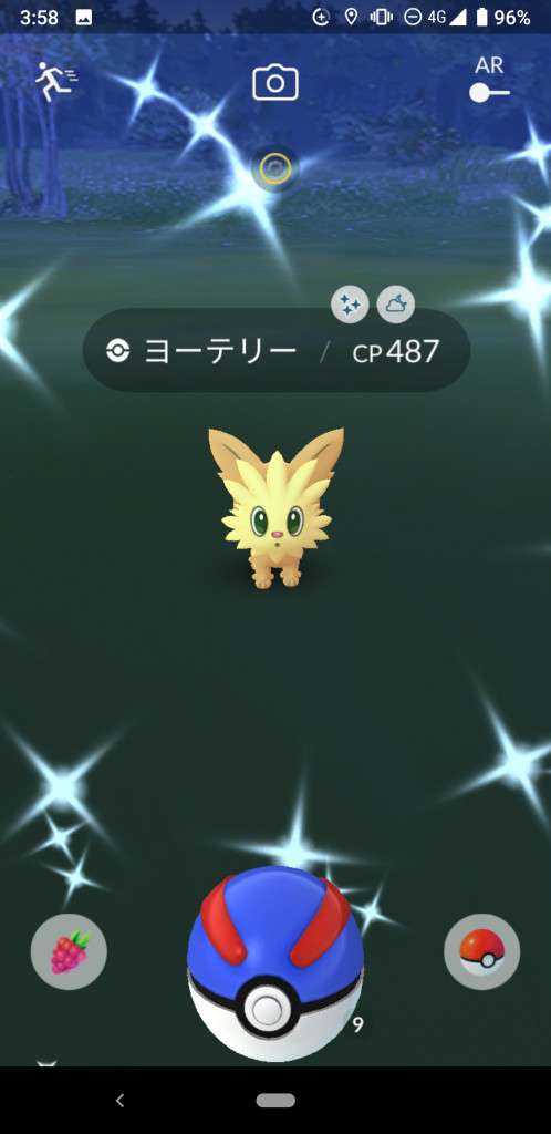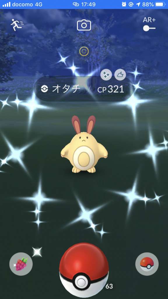・色違い出現したら、右上「AR+」のON・OFF切り替えで、タイミング良く写るまで何回も挑戦