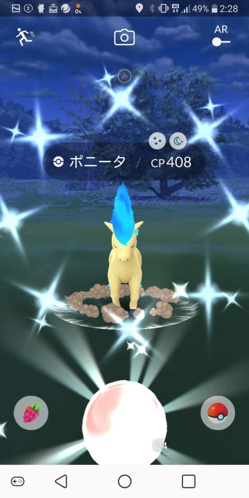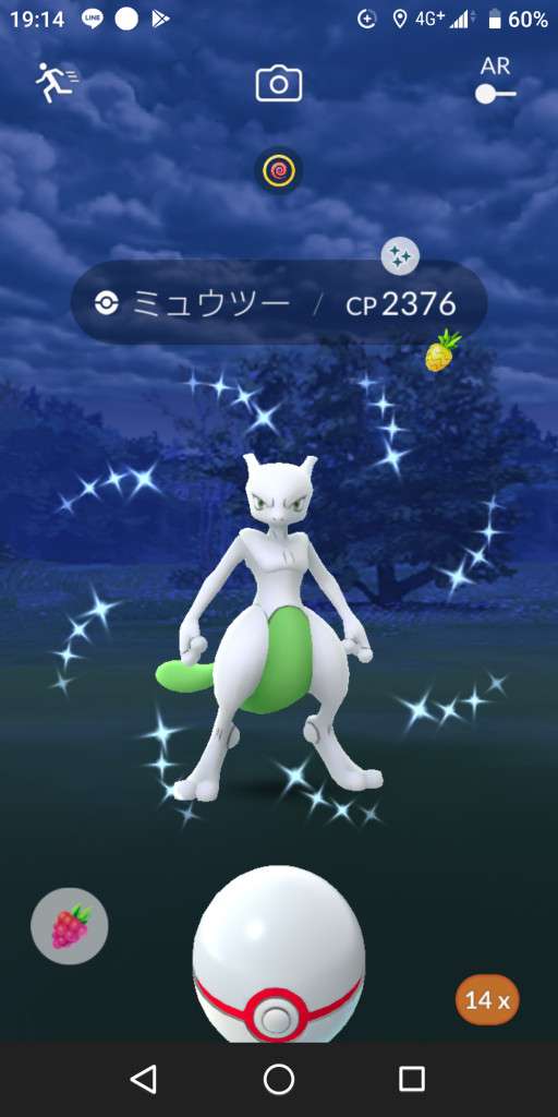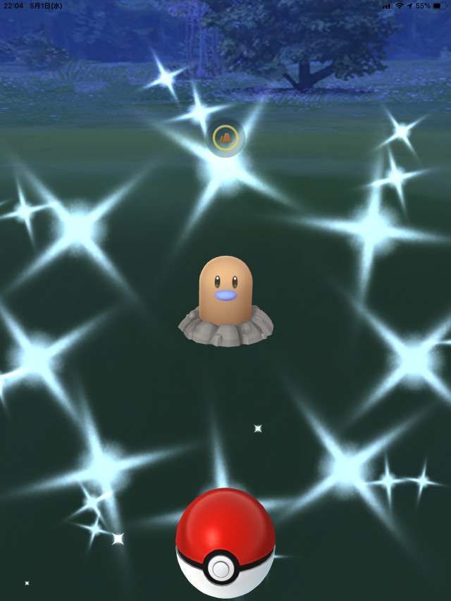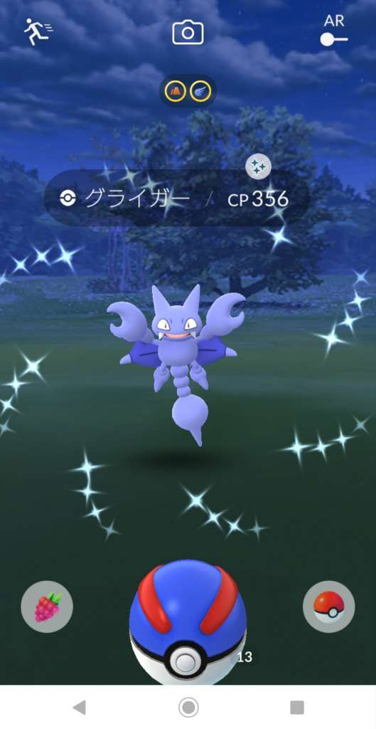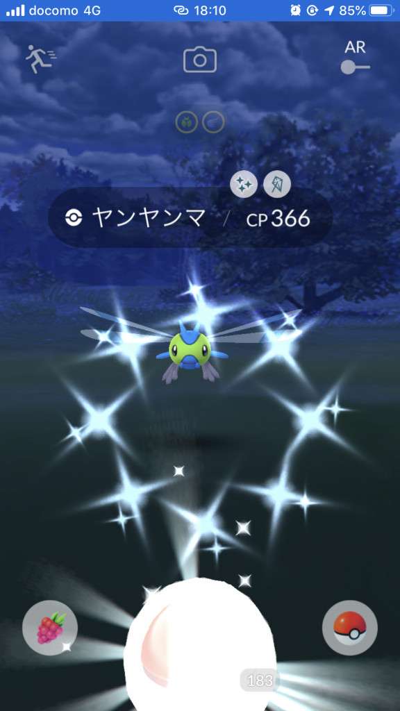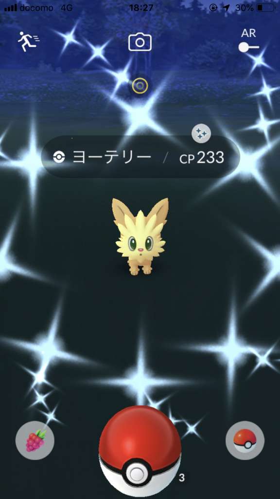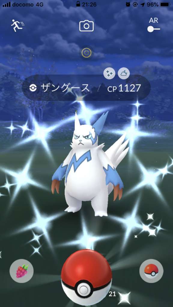 ・色違い出現したら、右上「AR+」のON・OFF切り替えで、タイミング良く写るまで何回も挑戦