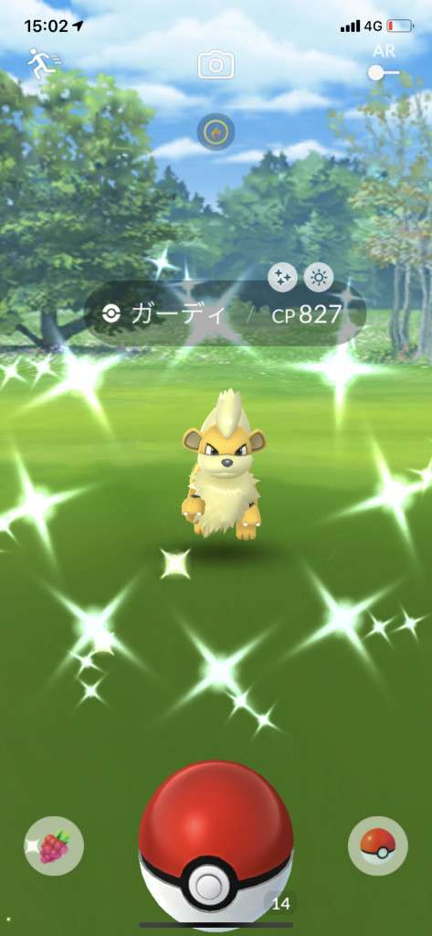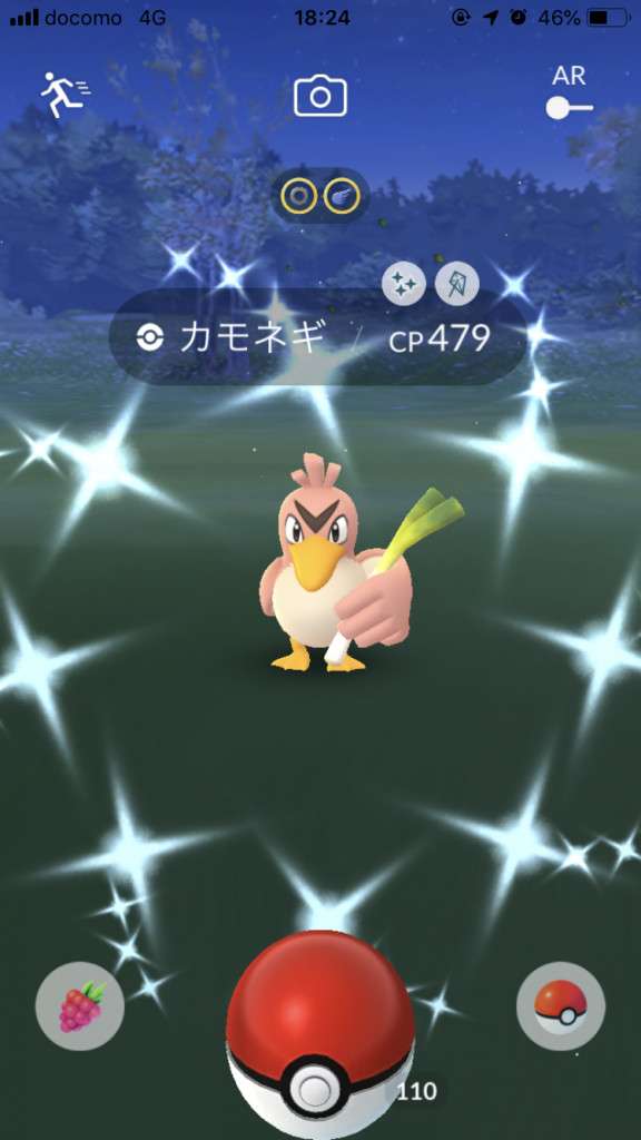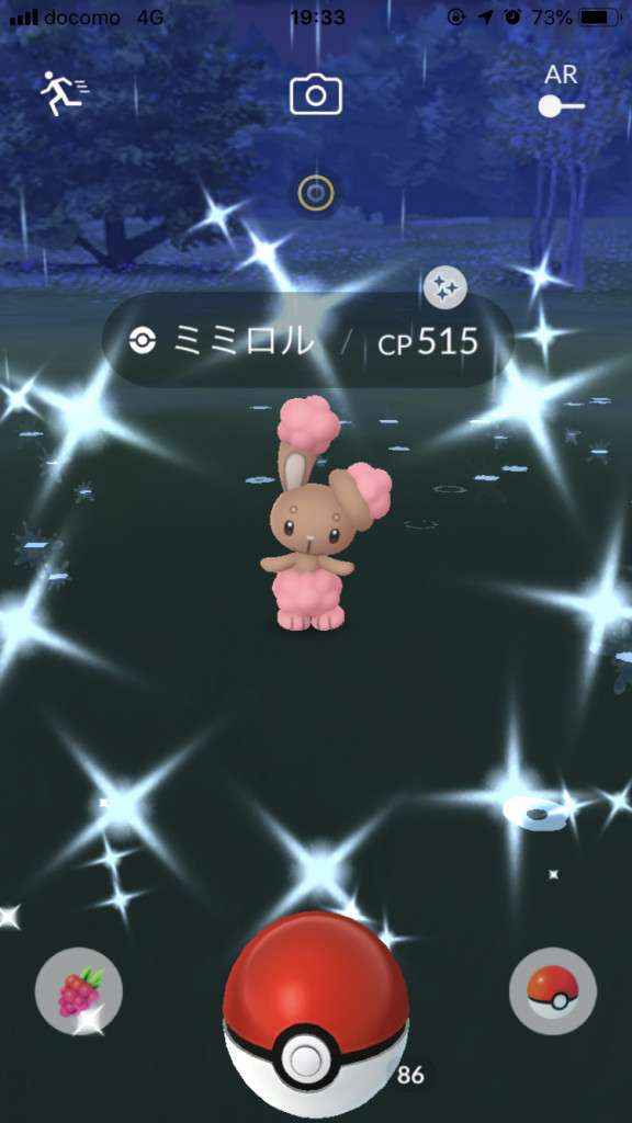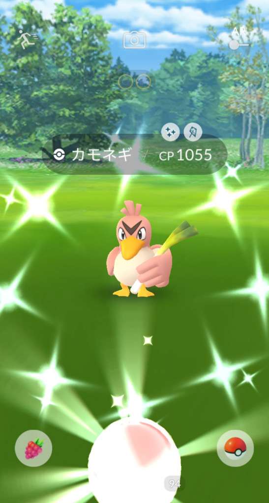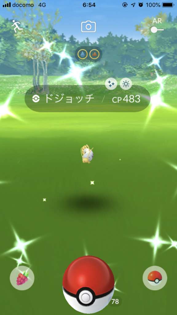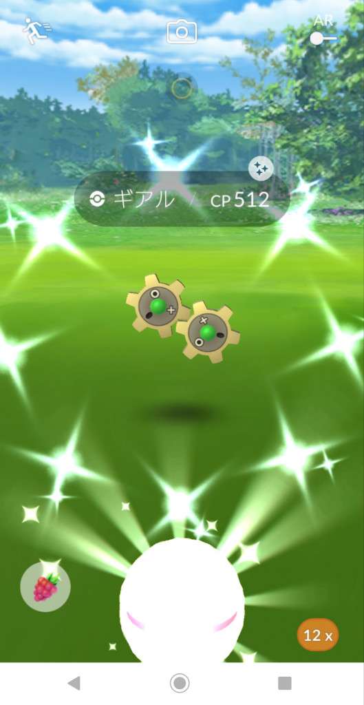 ・色違い出現したら、右上「AR+」のON・OFF切り替えで、タイミング良く写るまで何回も挑戦