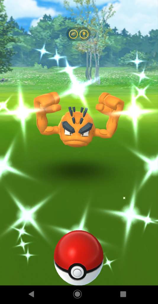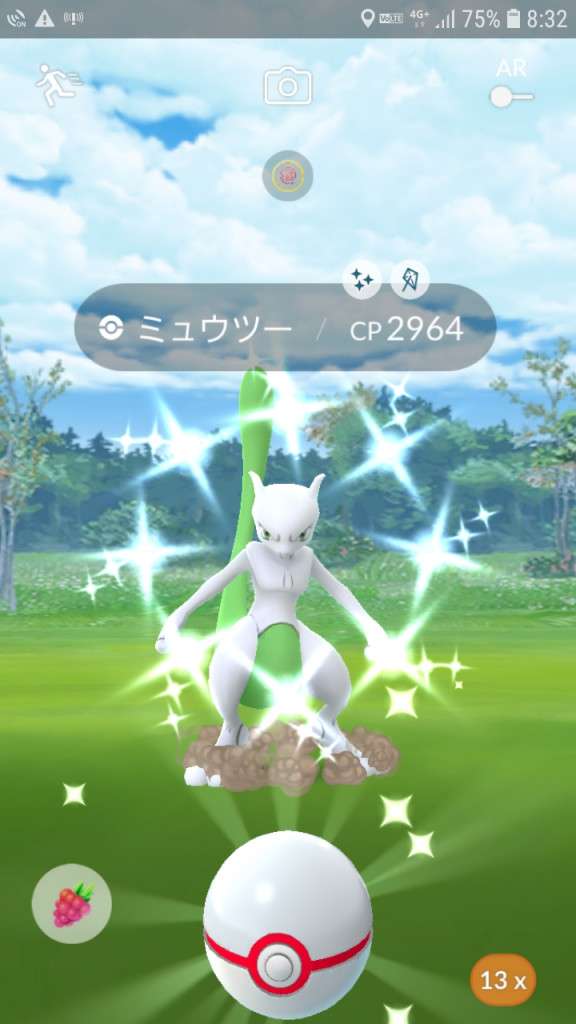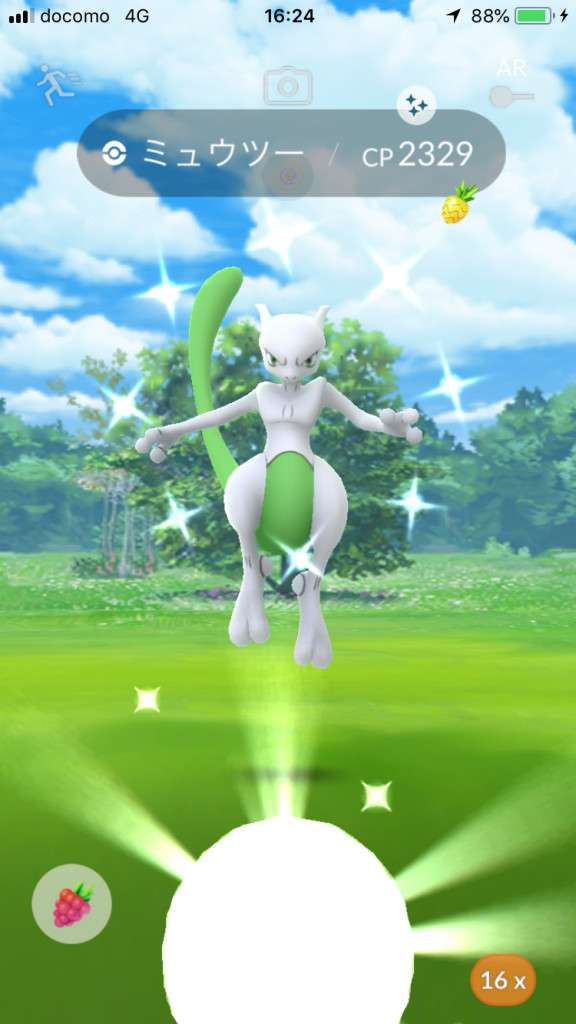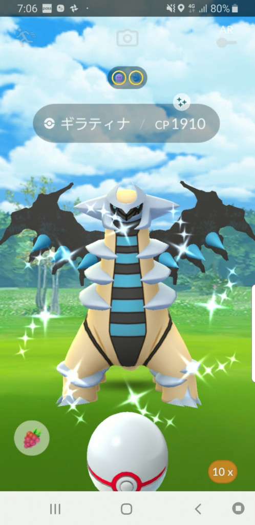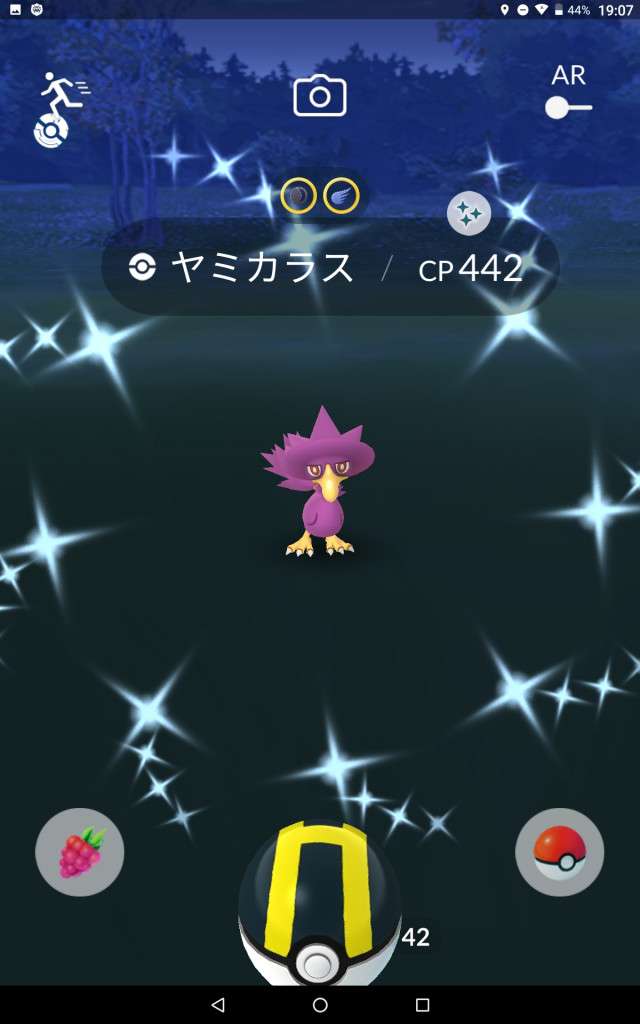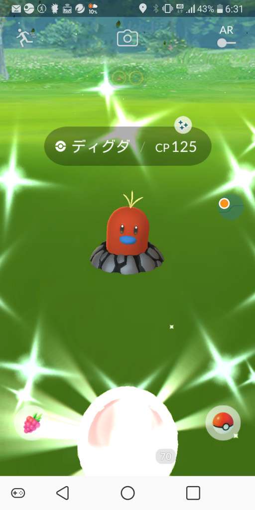 ・色違い出現したら、右上「AR+」のON・OFF切り替えで、タイミング良く写るまで何回も挑戦