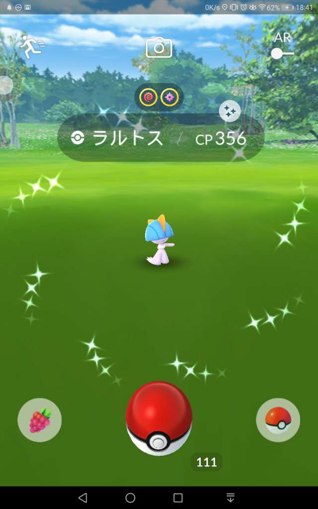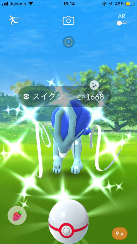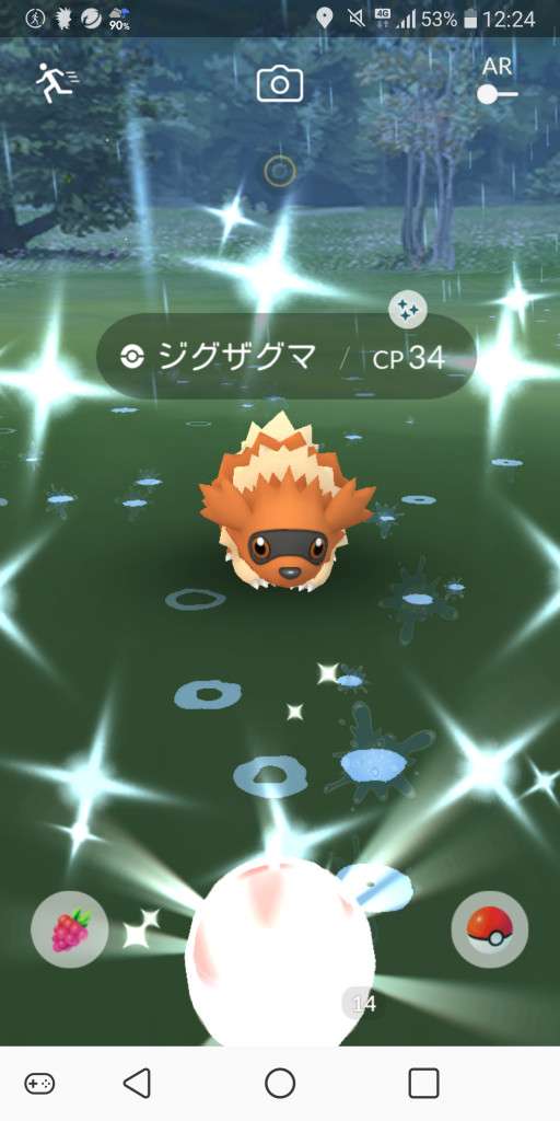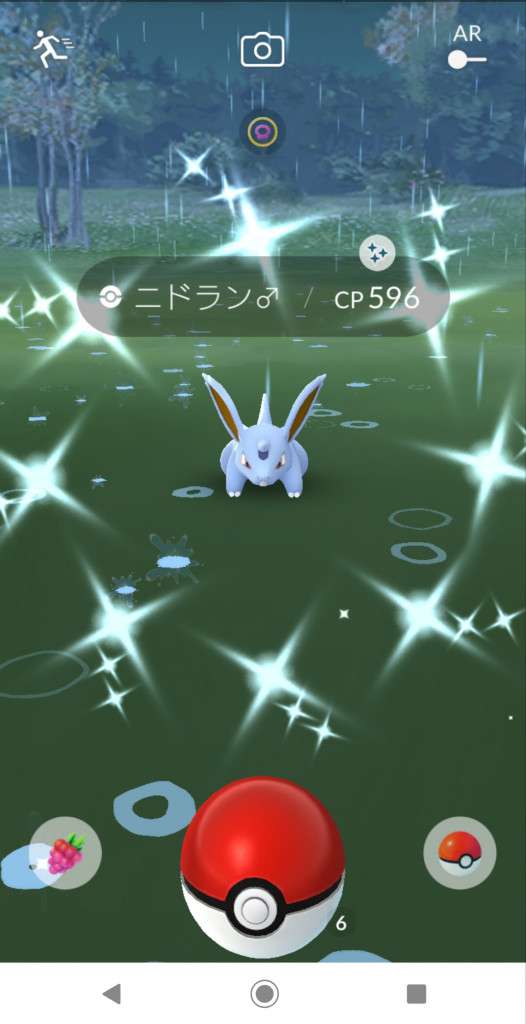 ・色違い出現したら、右上「AR+」のON・OFF切り替えで、タイミング良く写るまで何回も挑戦