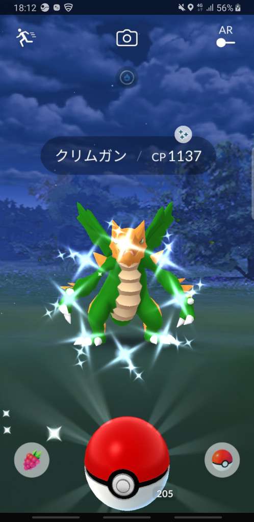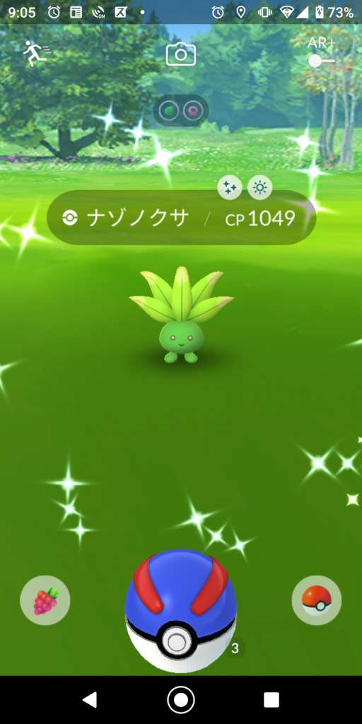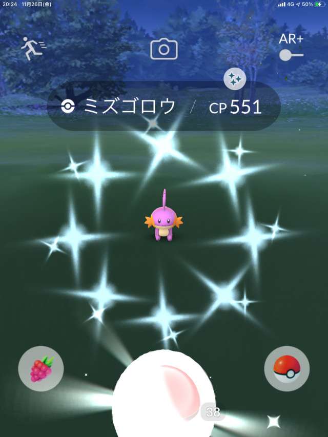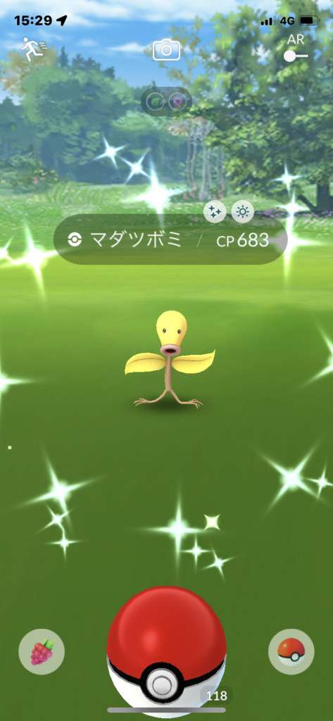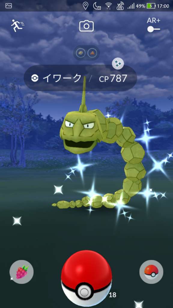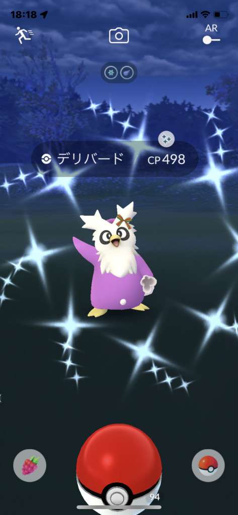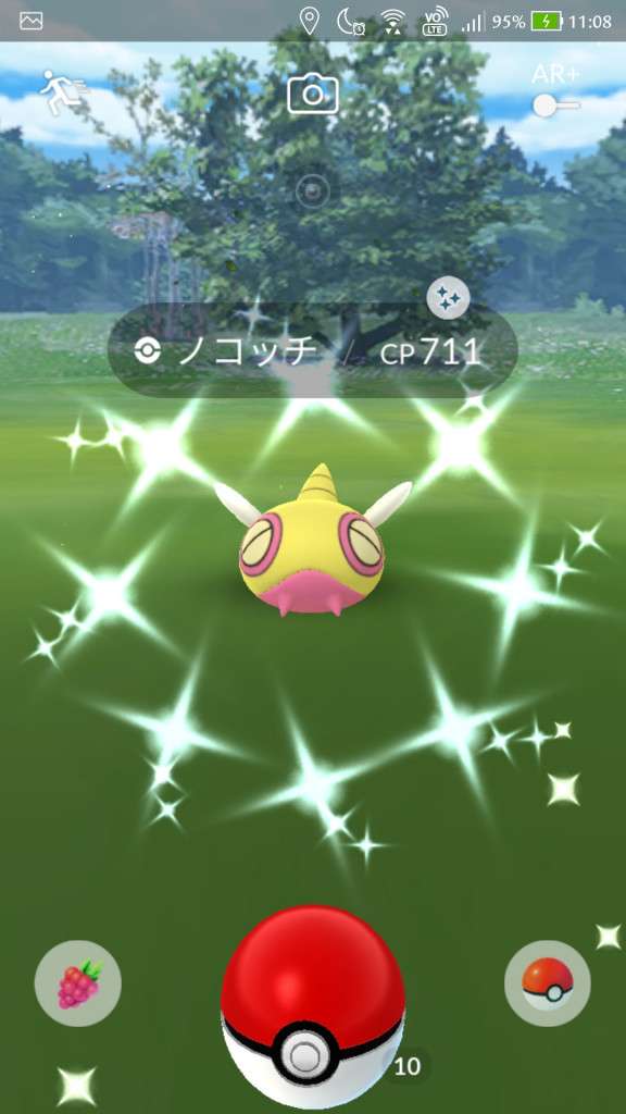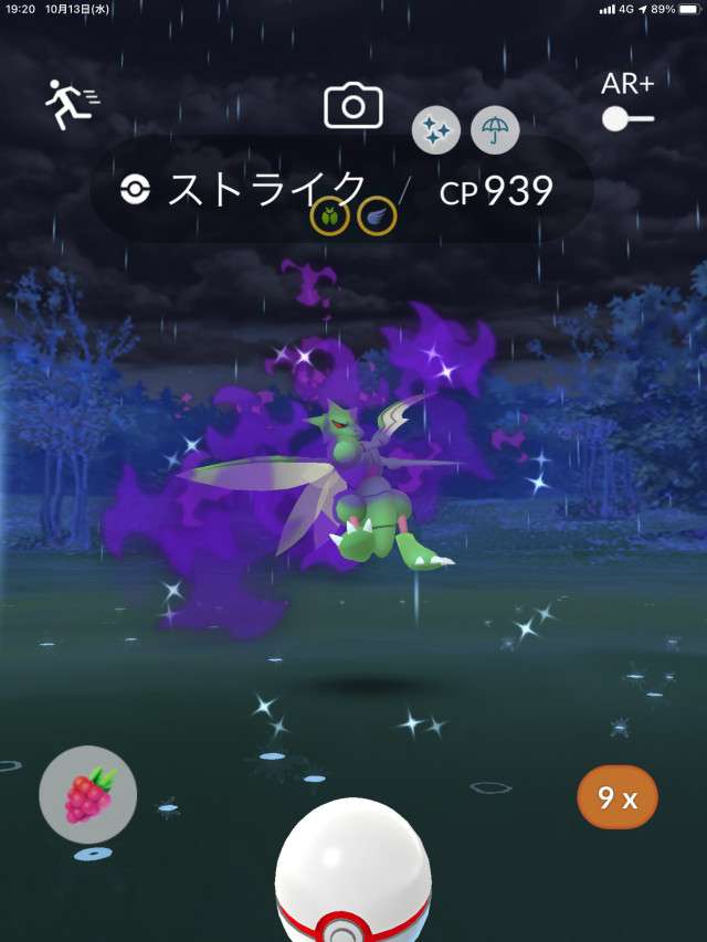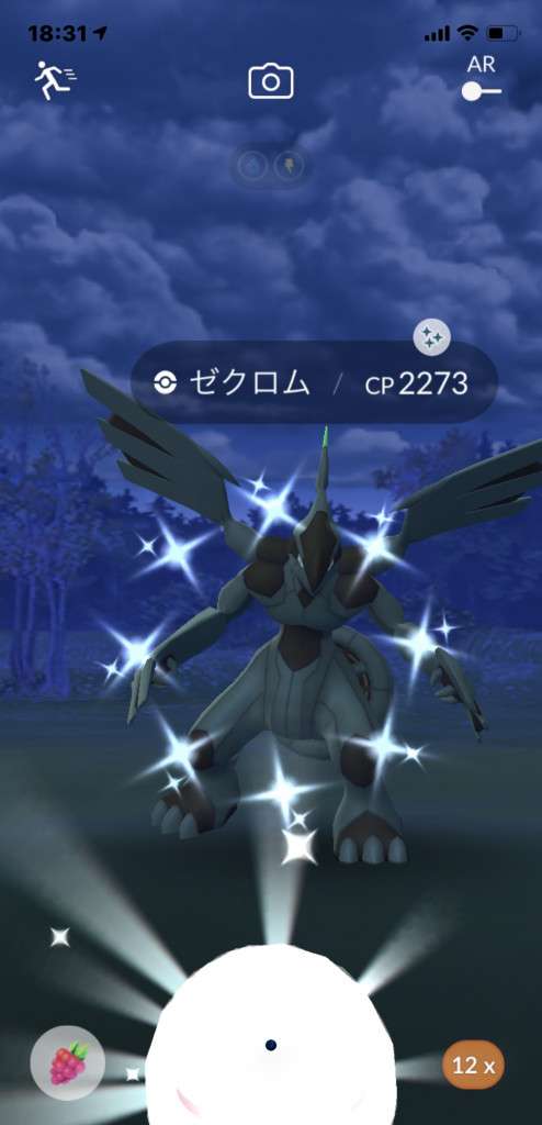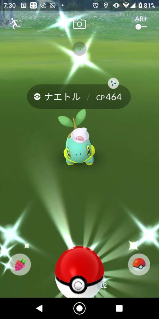 ・色違い出現したら、右上「AR+」のON・OFF切り替えで、タイミング良く写るまで何回も挑戦