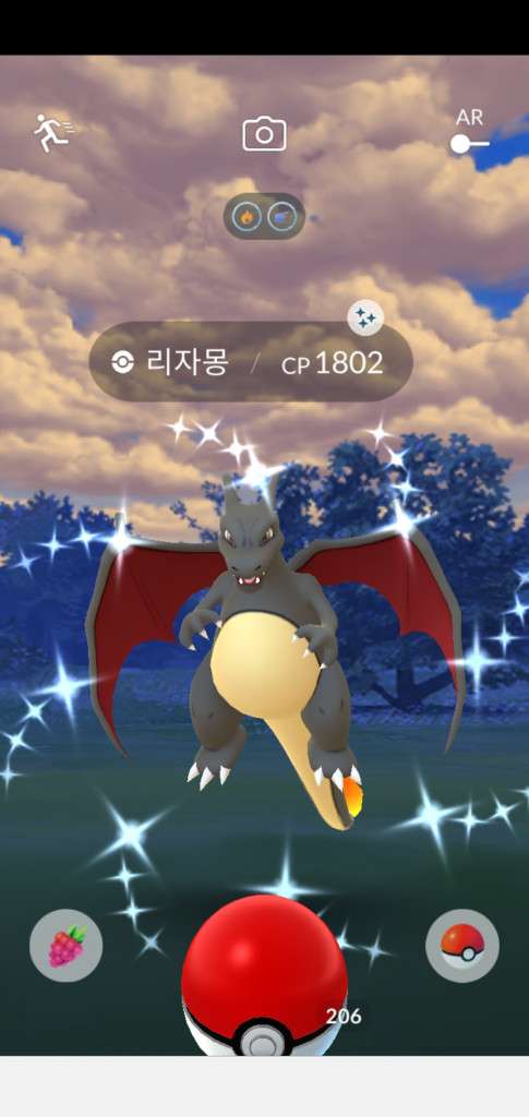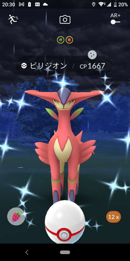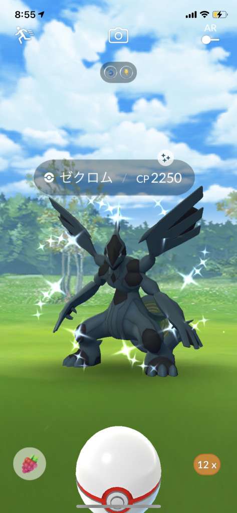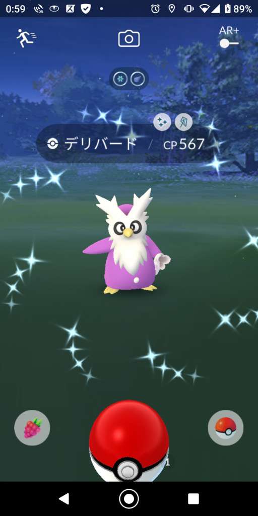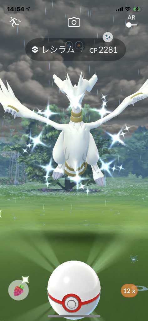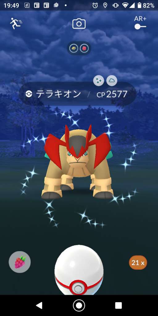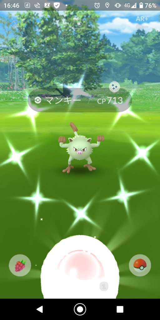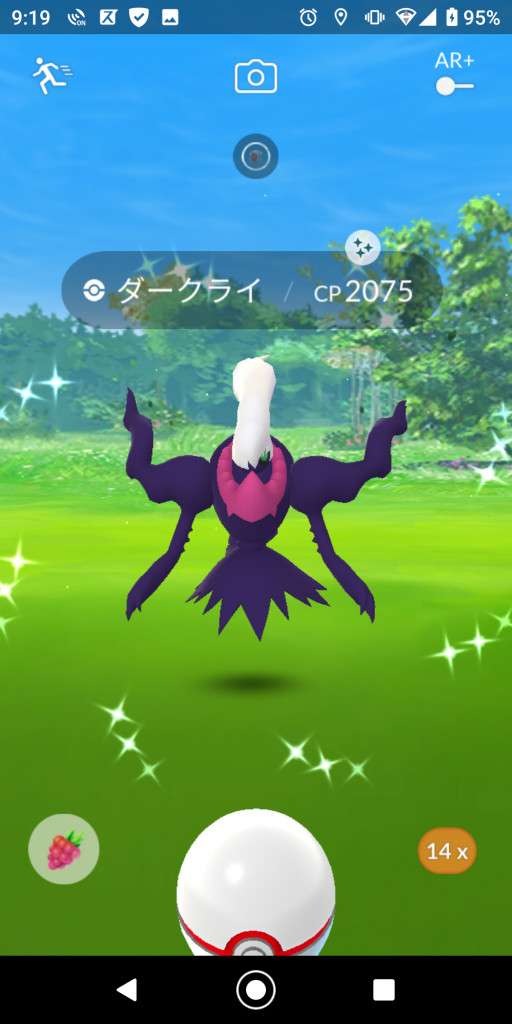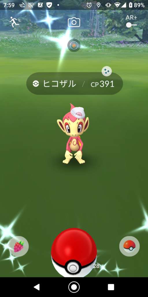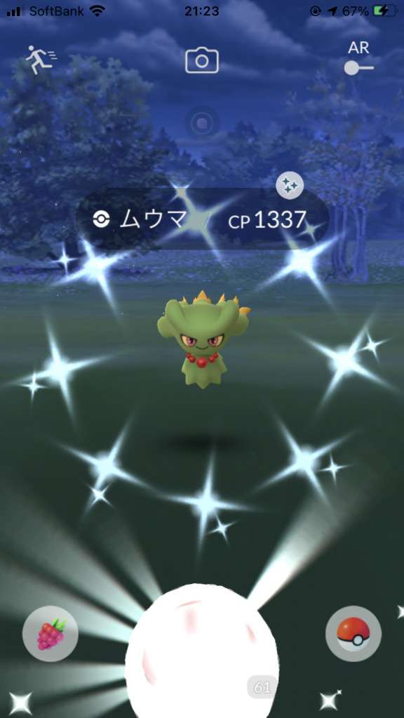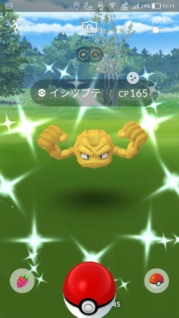 ・色違い出現したら、右上「AR+」のON・OFF切り替えで、タイミング良く写るまで何回も挑戦