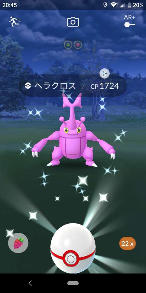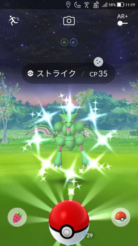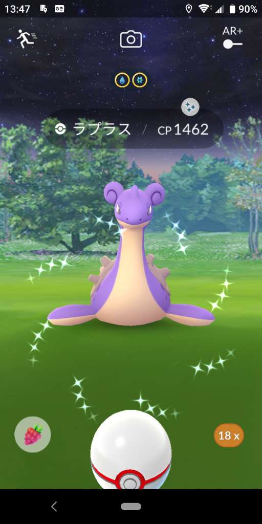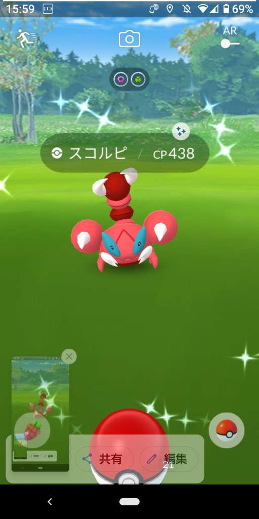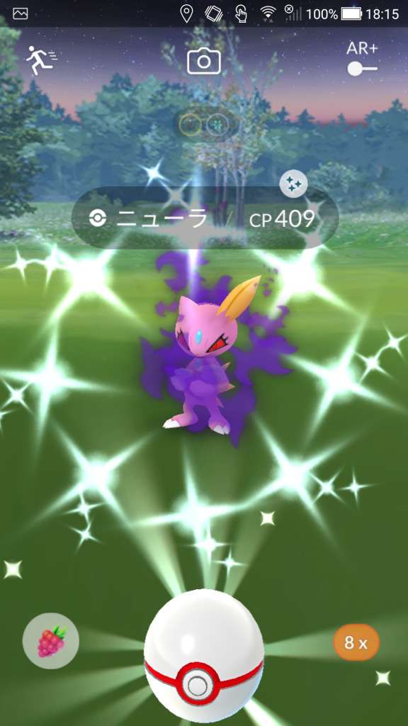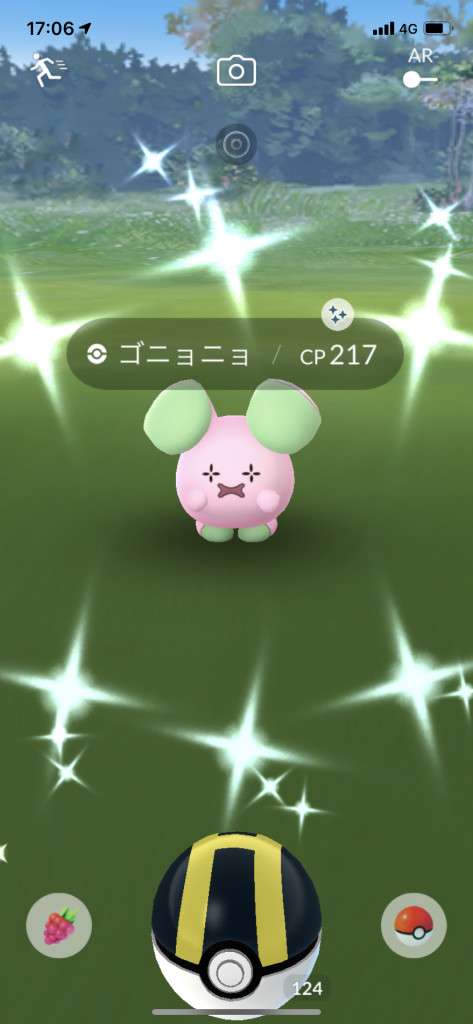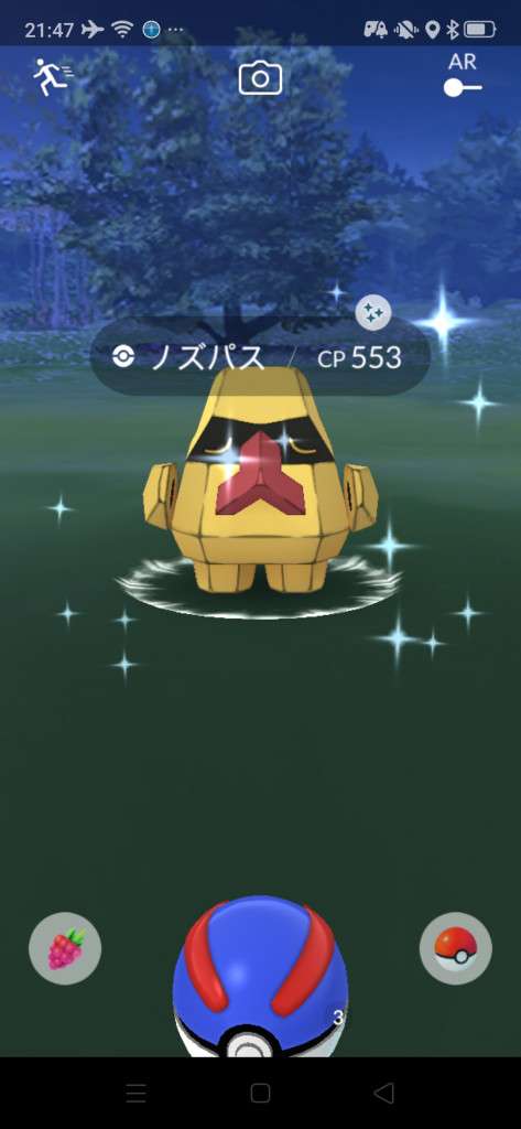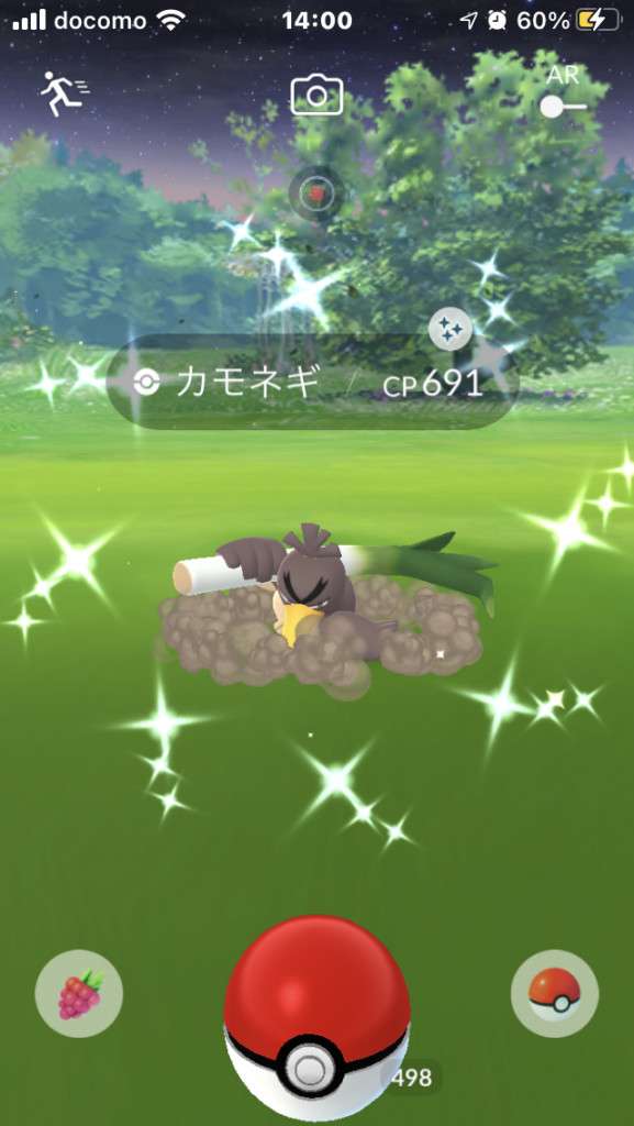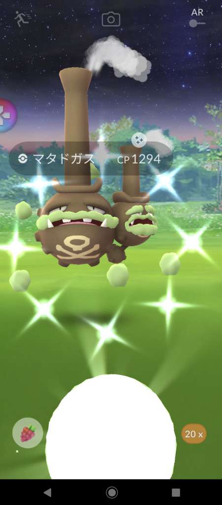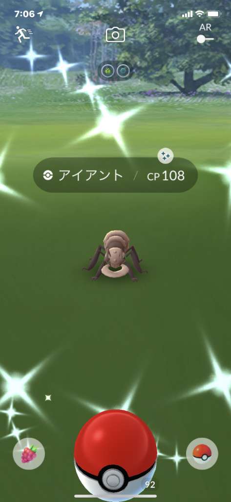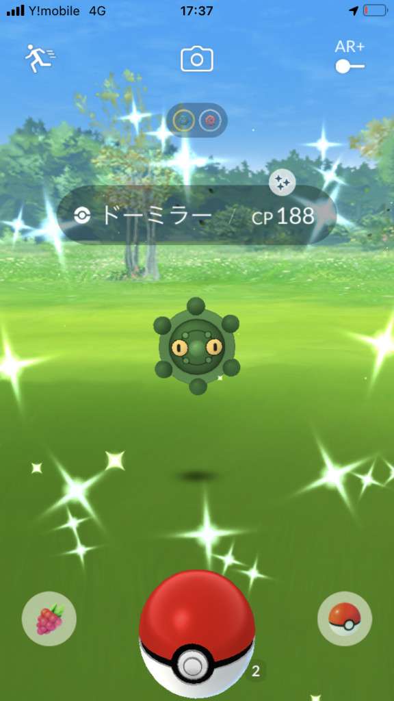 ・色違い出現したら、右上「AR+」のON・OFF切り替えで、タイミング良く写るまで何回も挑戦