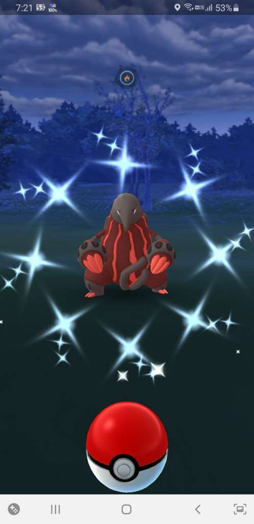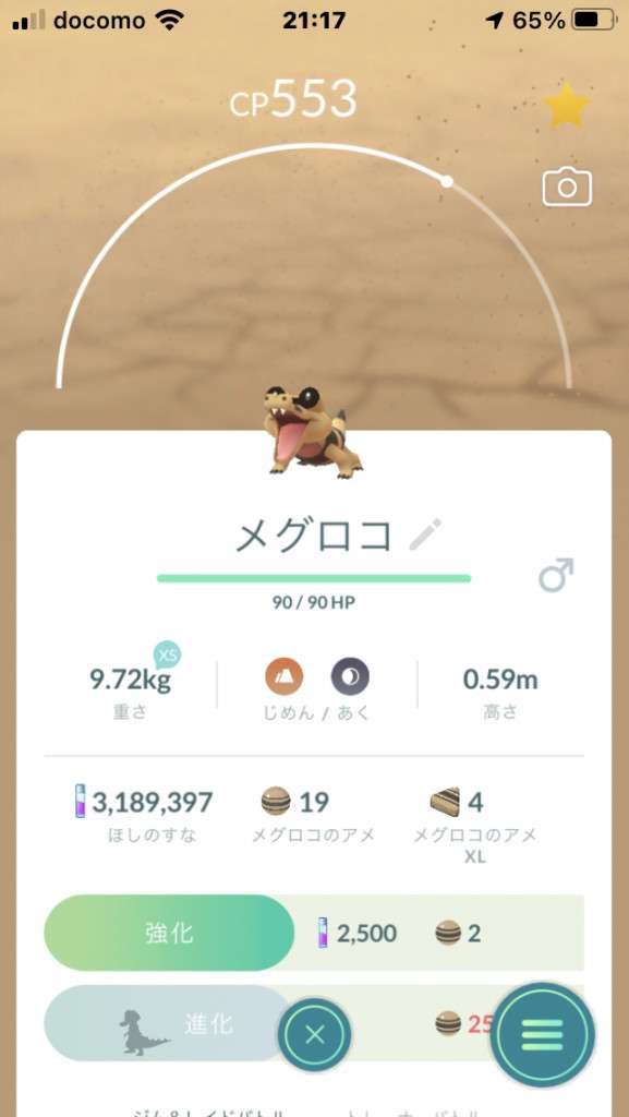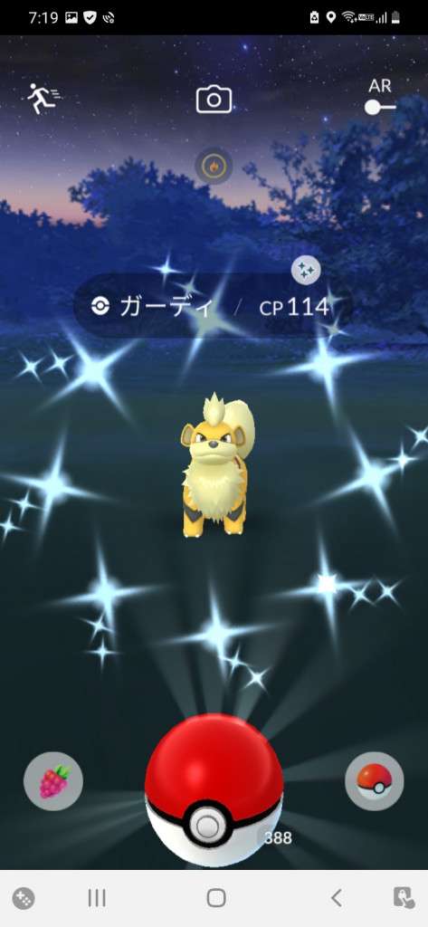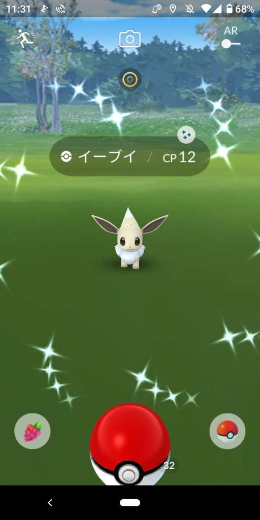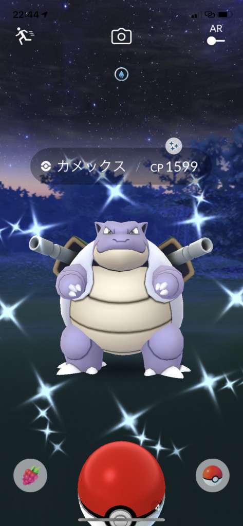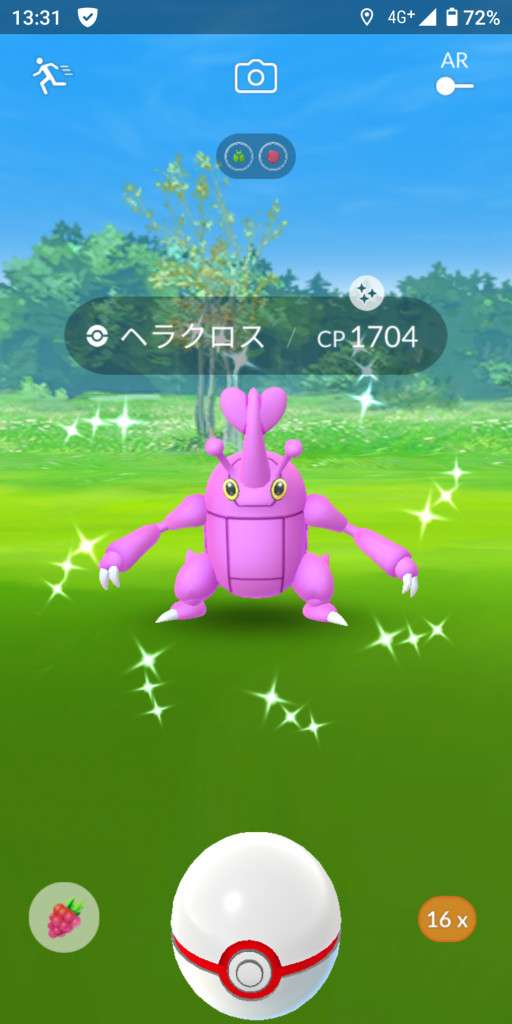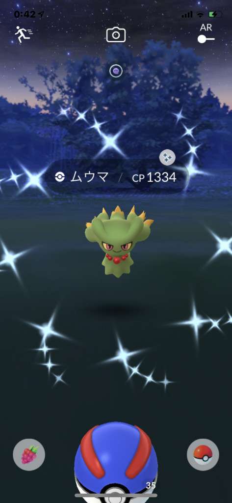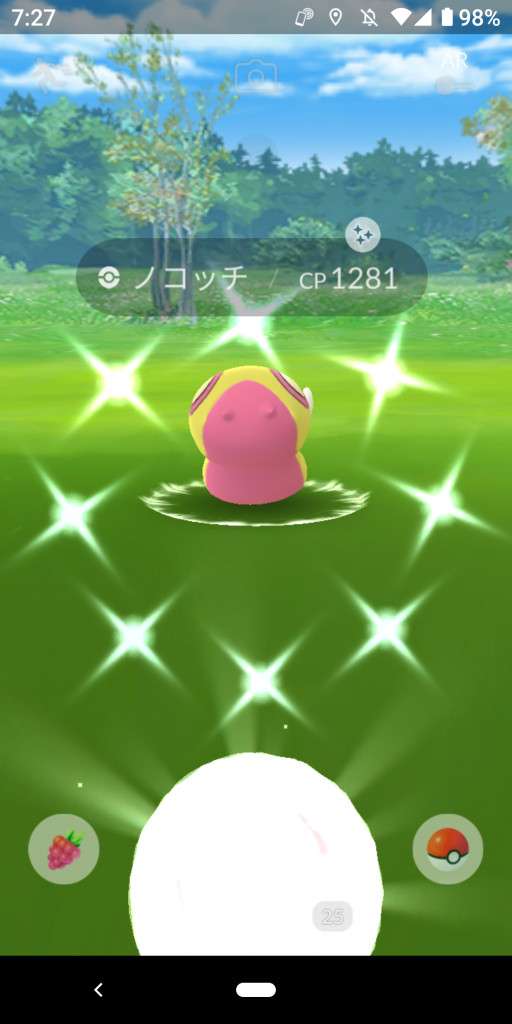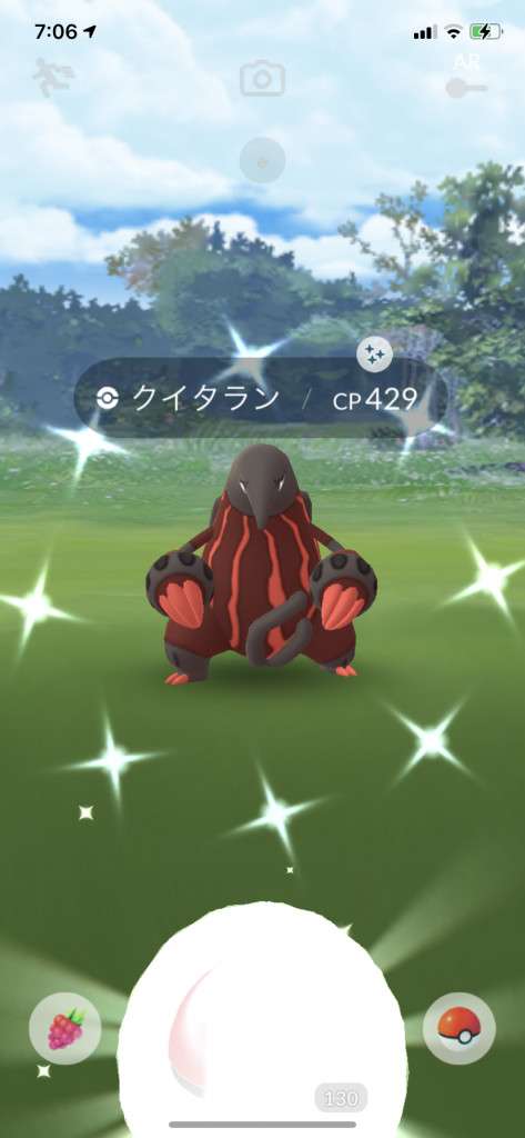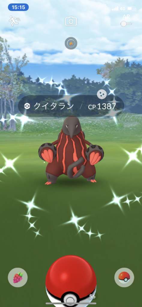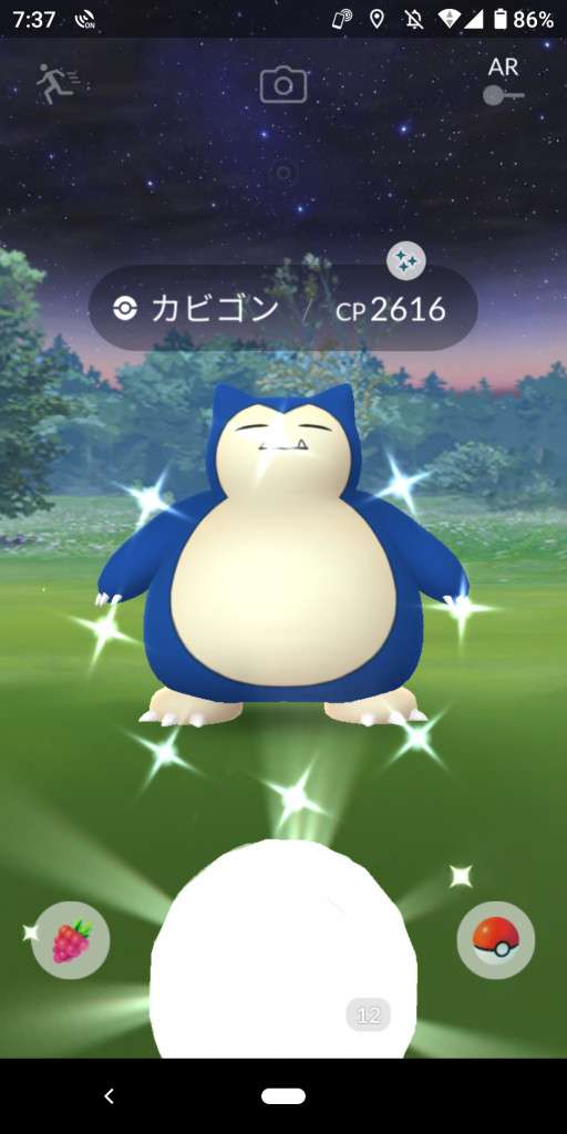 ・色違い出現したら、右上「AR+」のON・OFF切り替えで、タイミング良く写るまで何回も挑戦