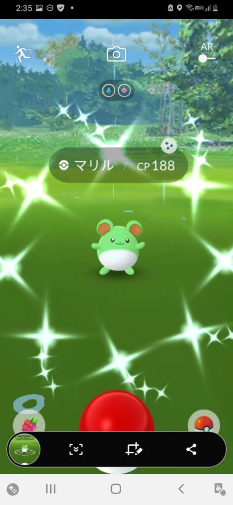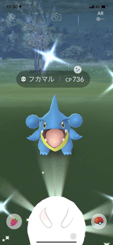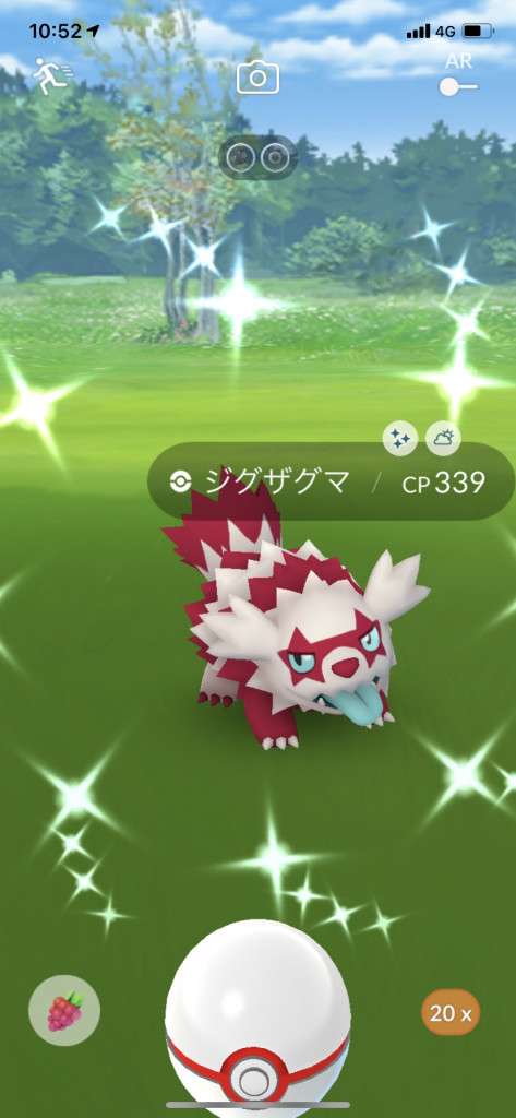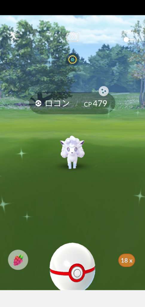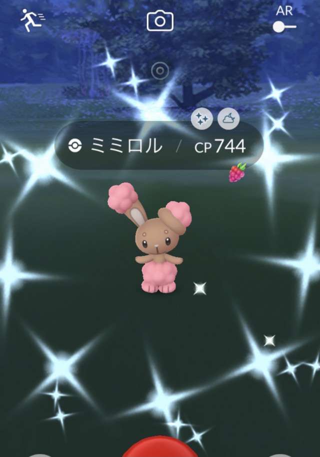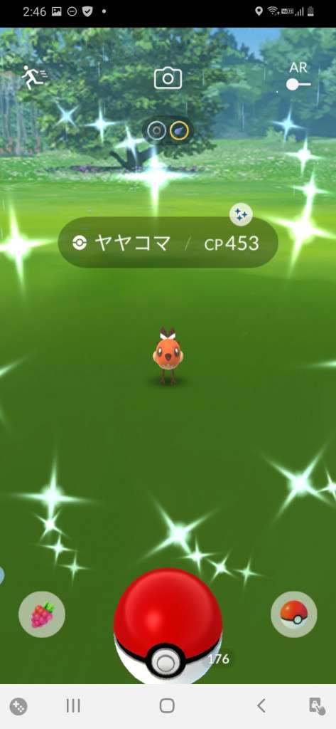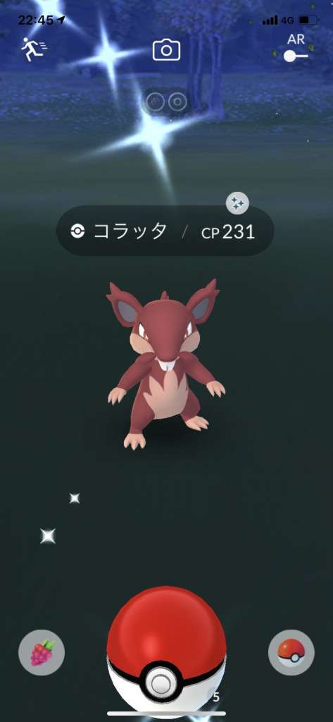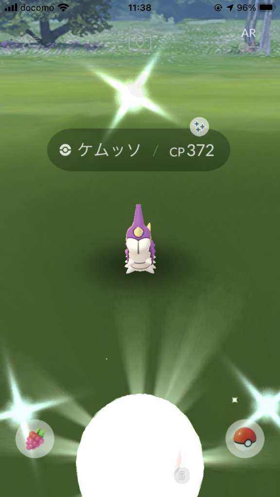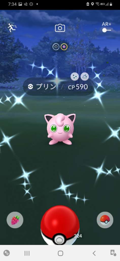 ・色違い出現したら、右上「AR+」のON・OFF切り替えで、タイミング良く写るまで何回も挑戦