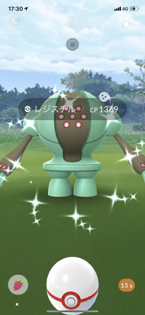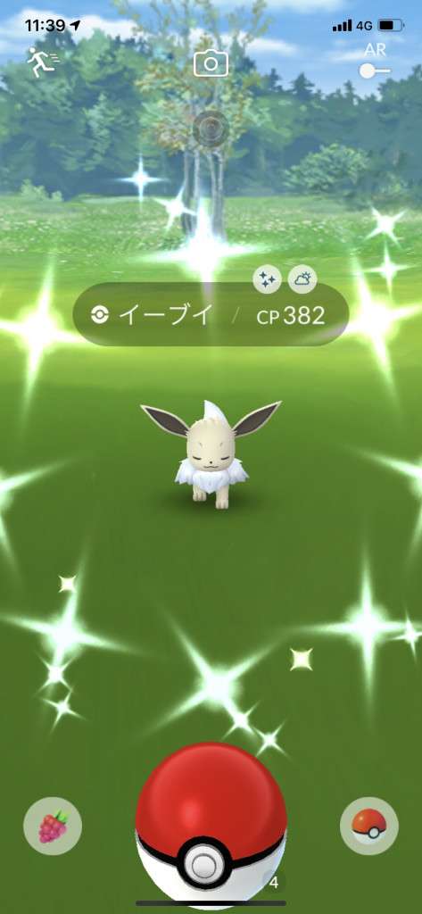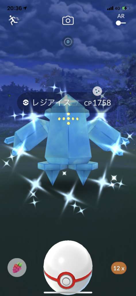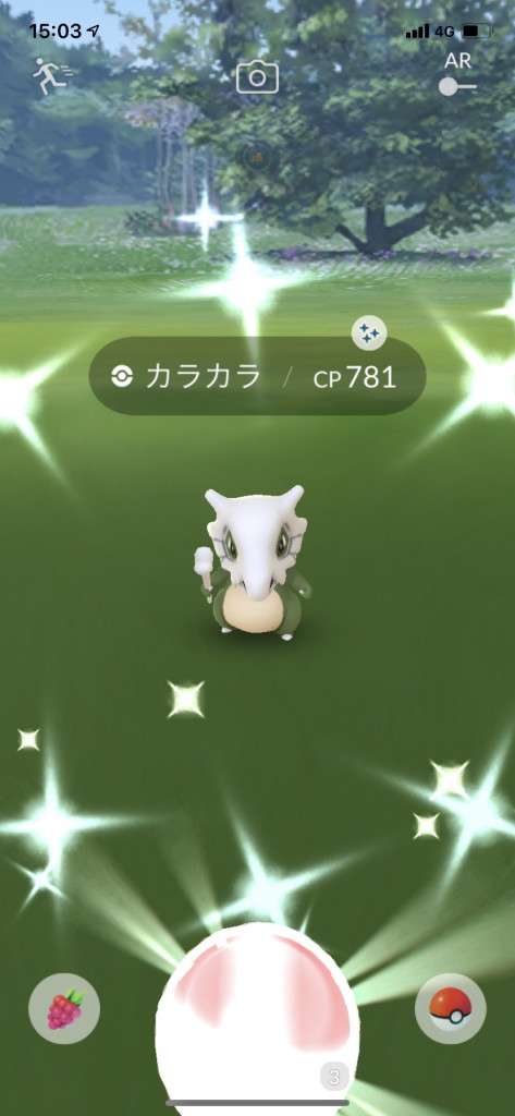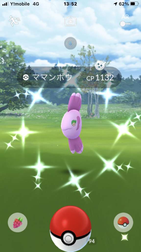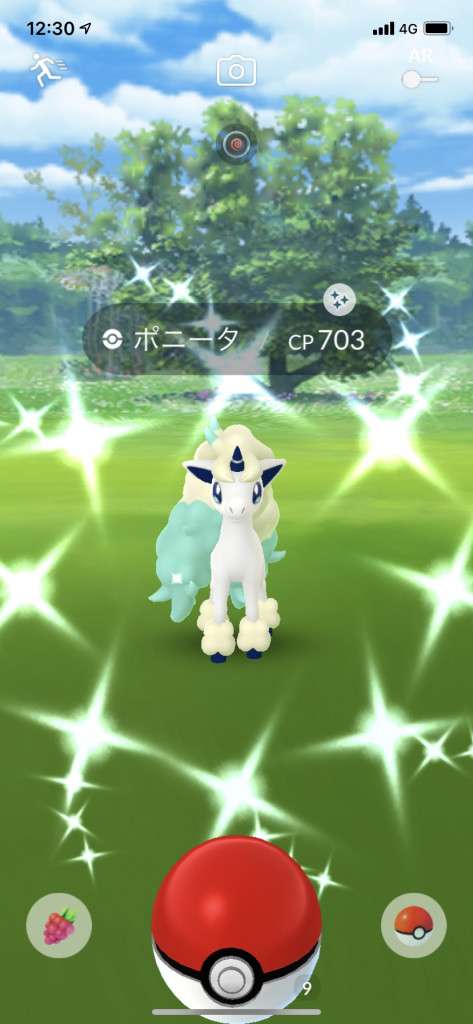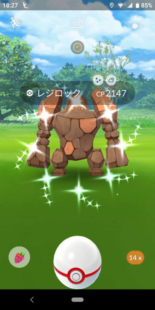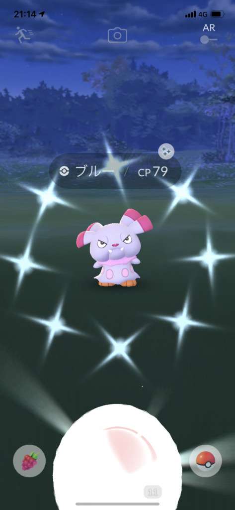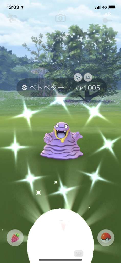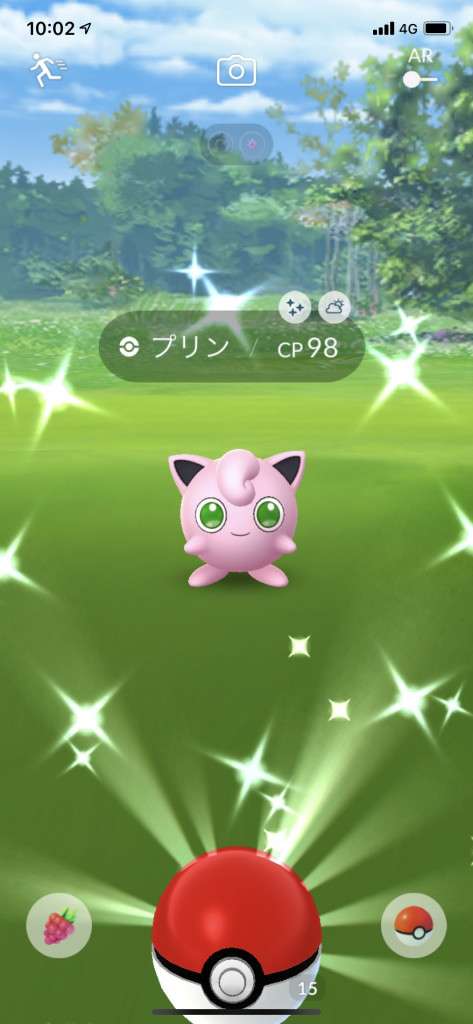 ・色違い出現したら、右上「AR+」のON・OFF切り替えで、タイミング良く写るまで何回も挑戦