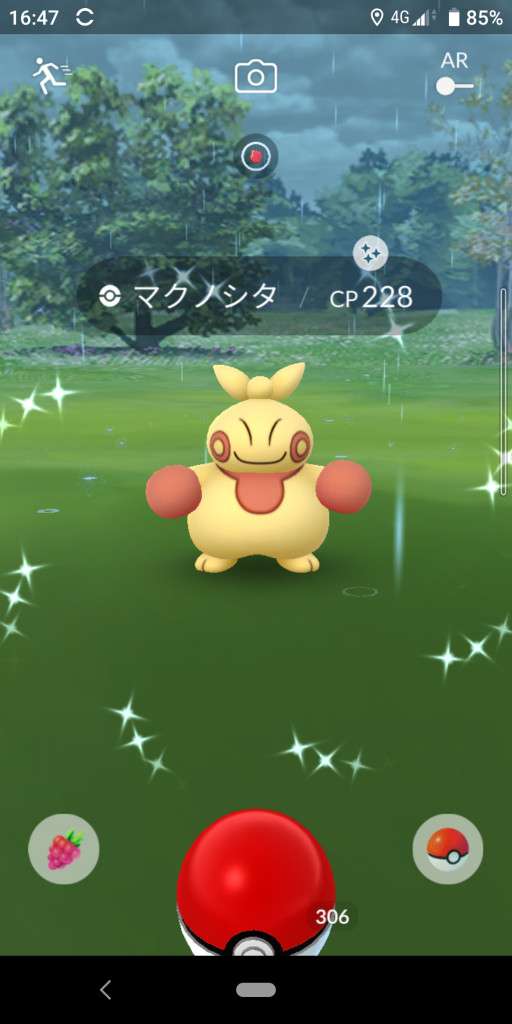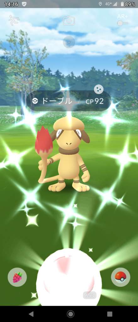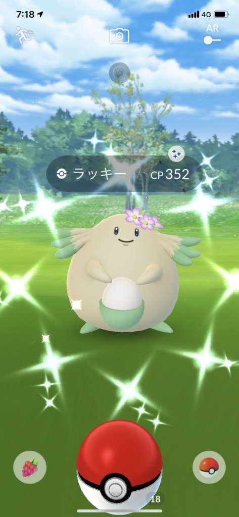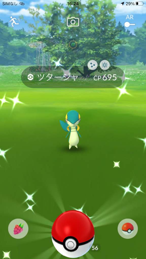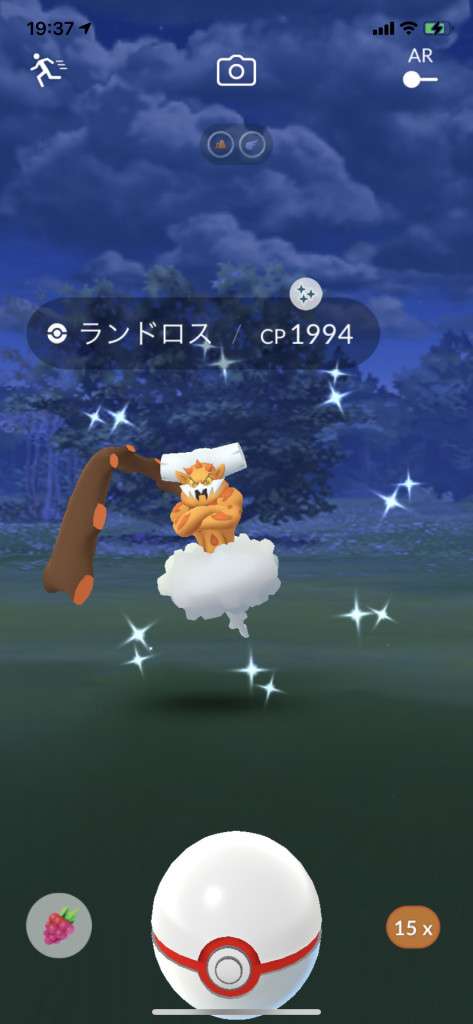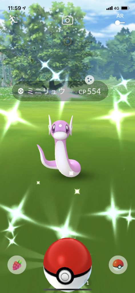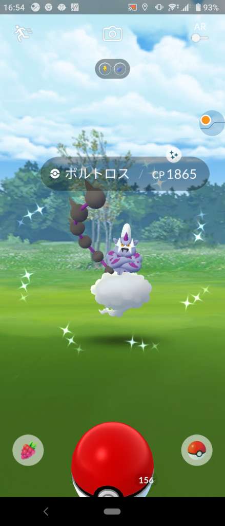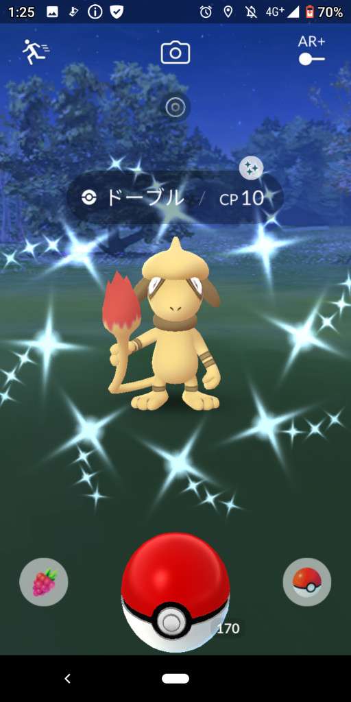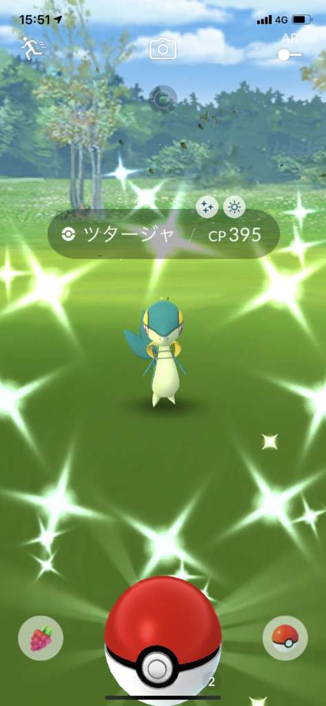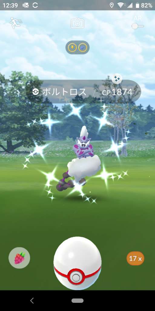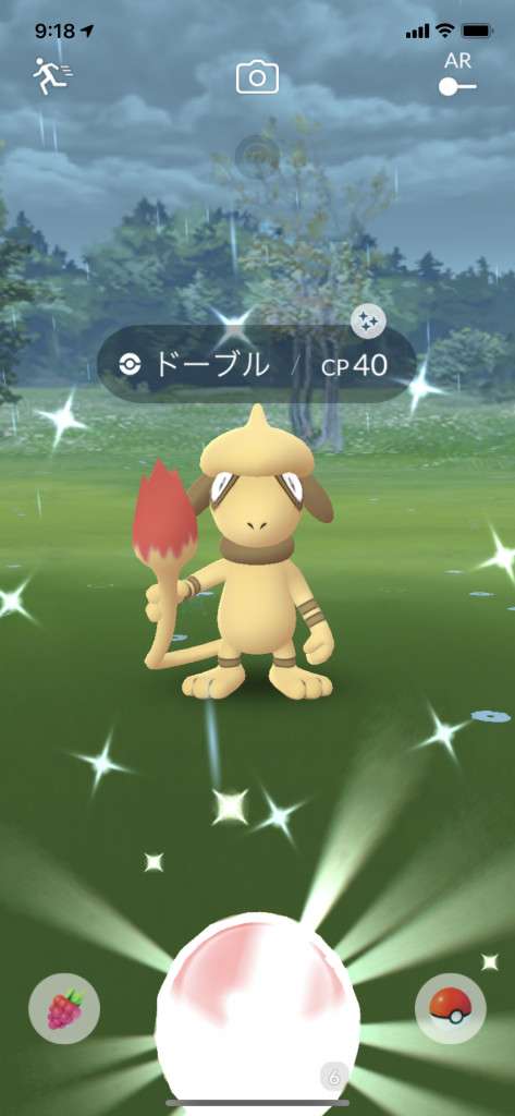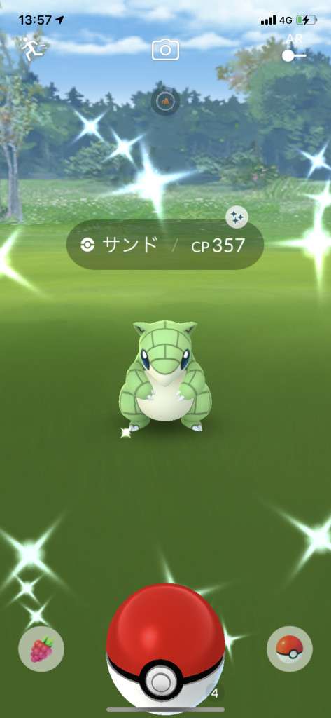 ・色違い出現したら、右上「AR+」のON・OFF切り替えで、タイミング良く写るまで何回も挑戦