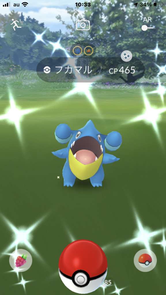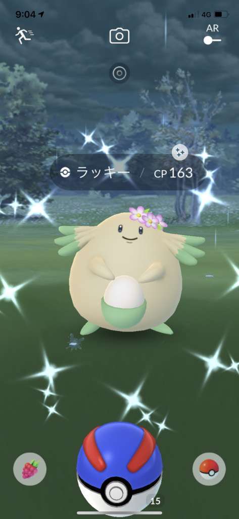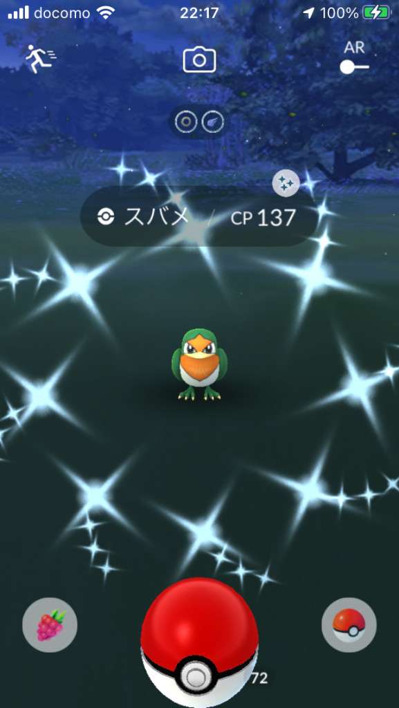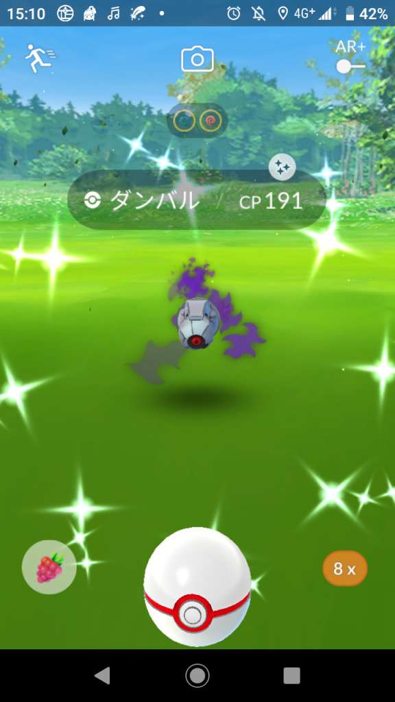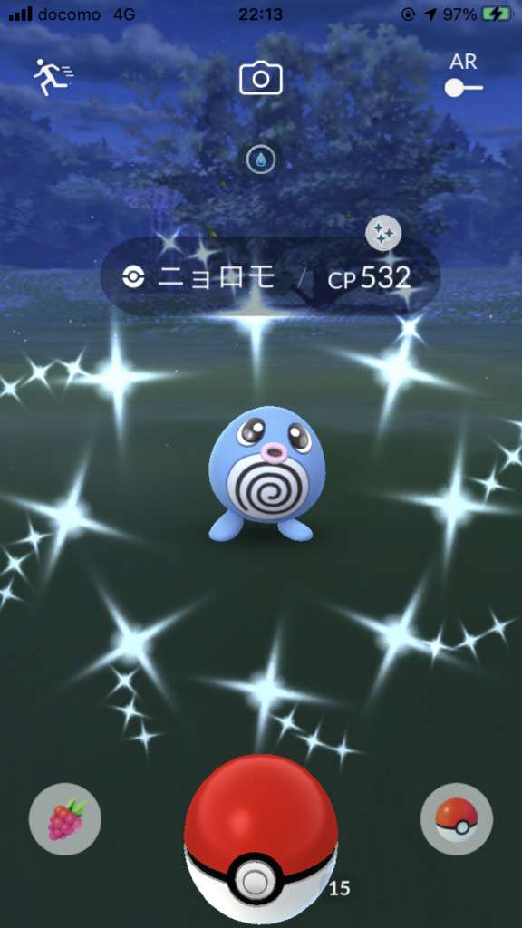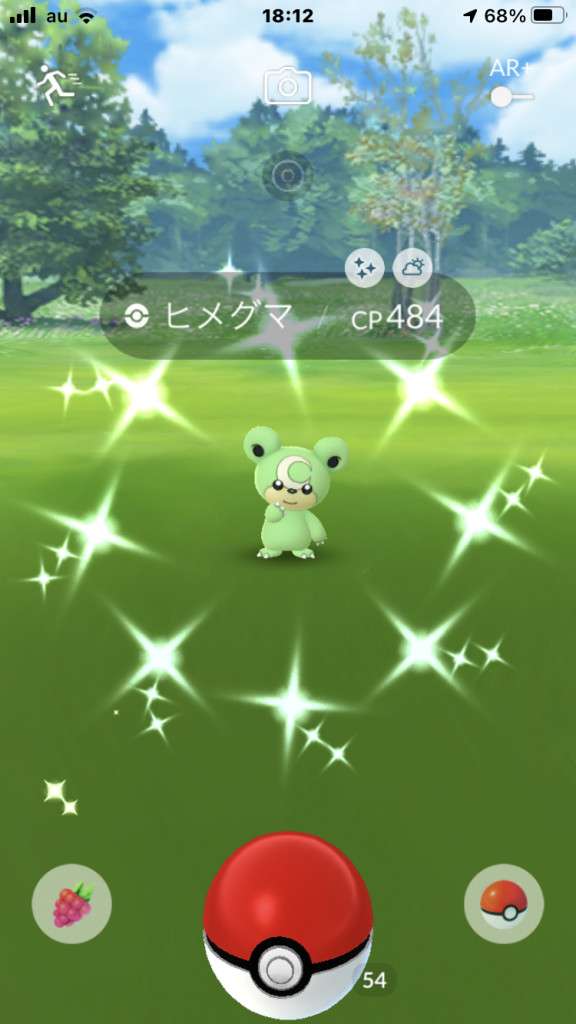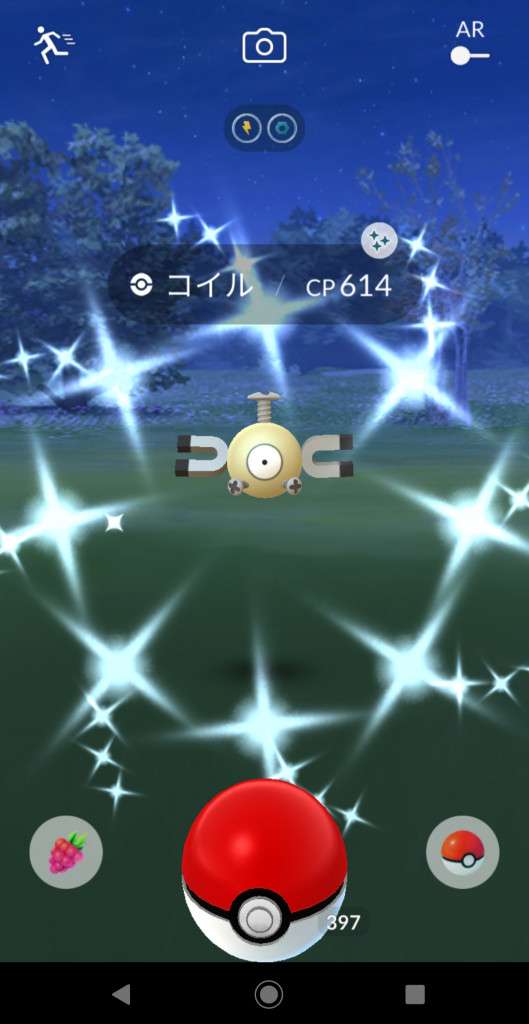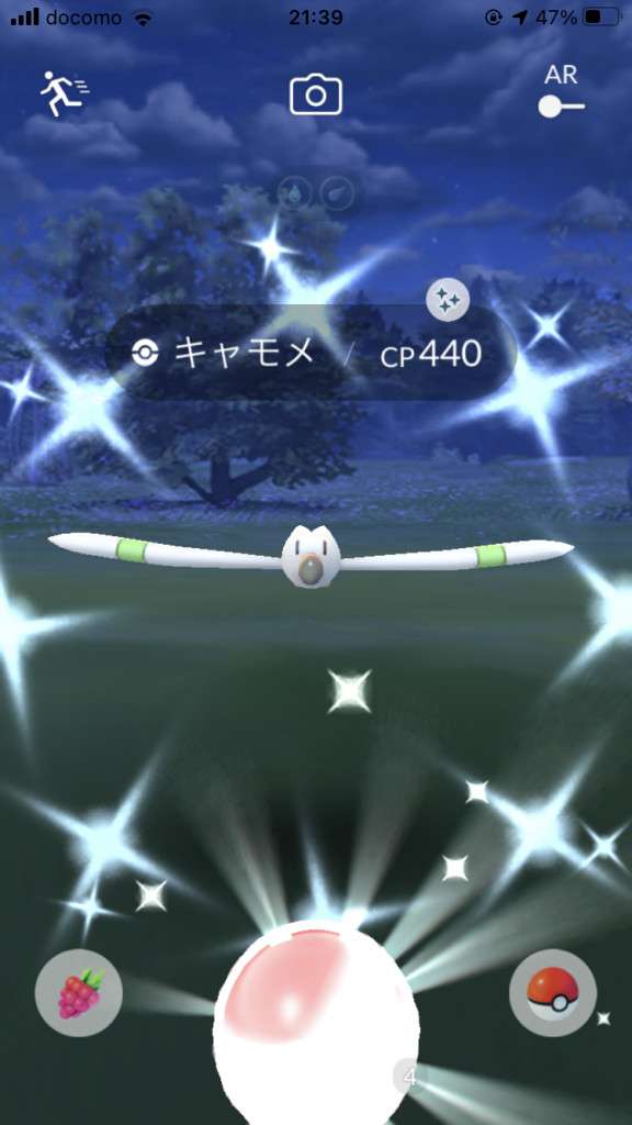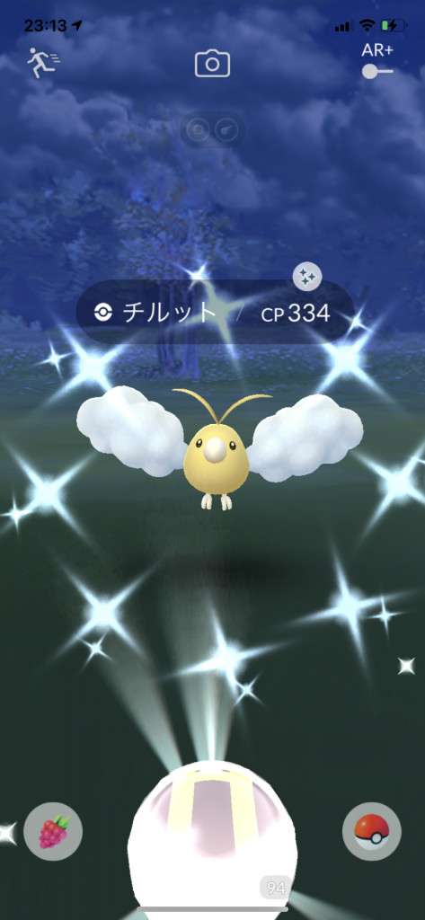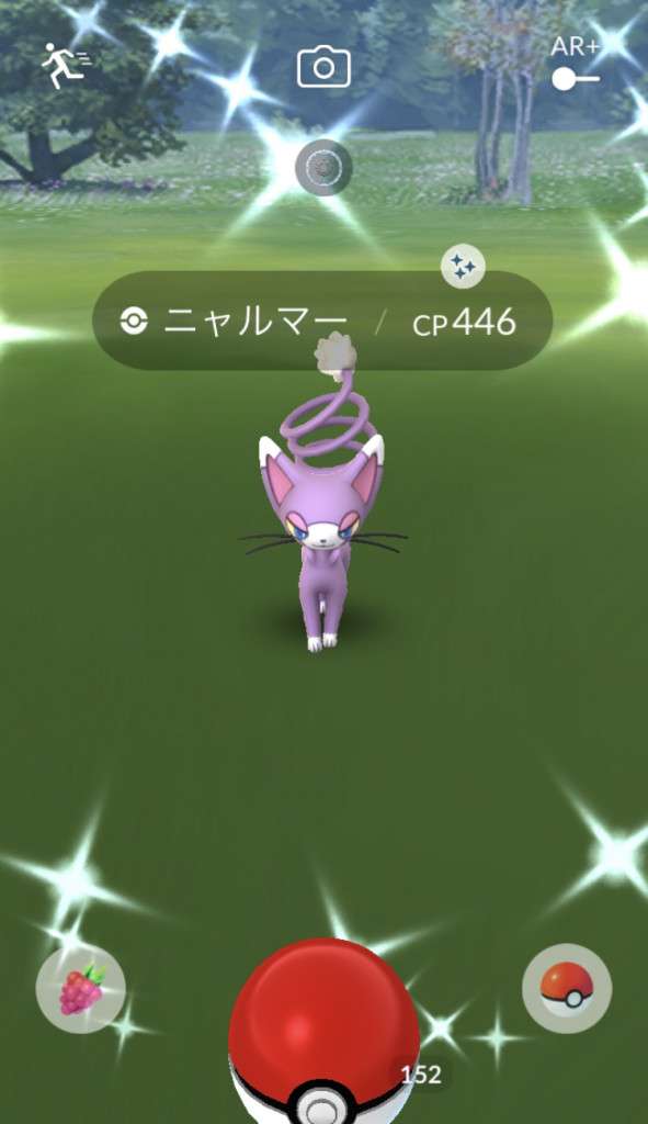 ・色違い出現したら、右上「AR+」のON・OFF切り替えで、タイミング良く写るまで何回も挑戦