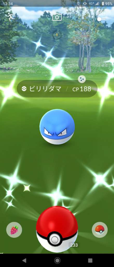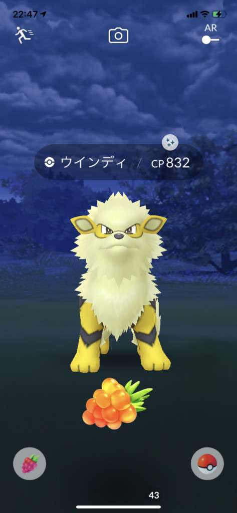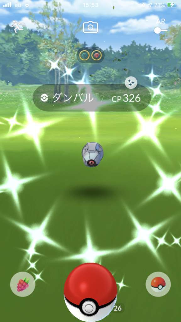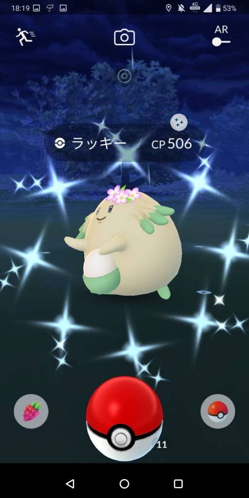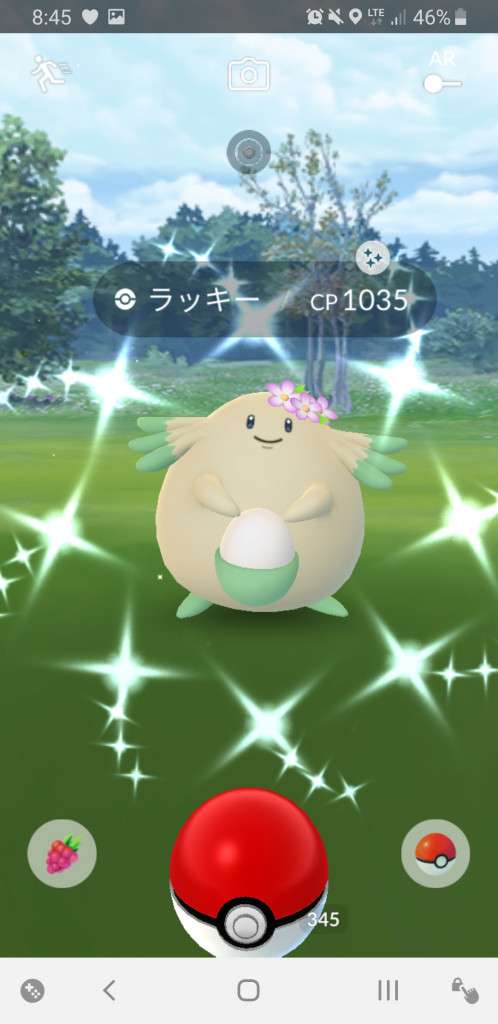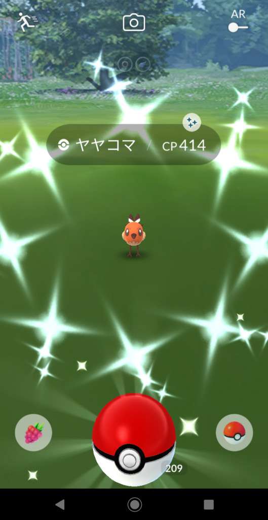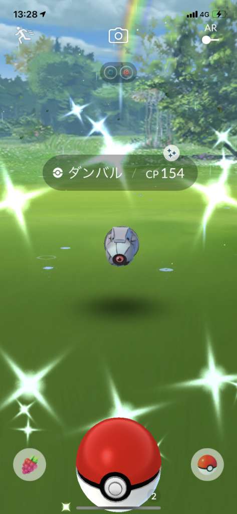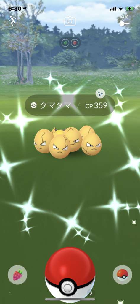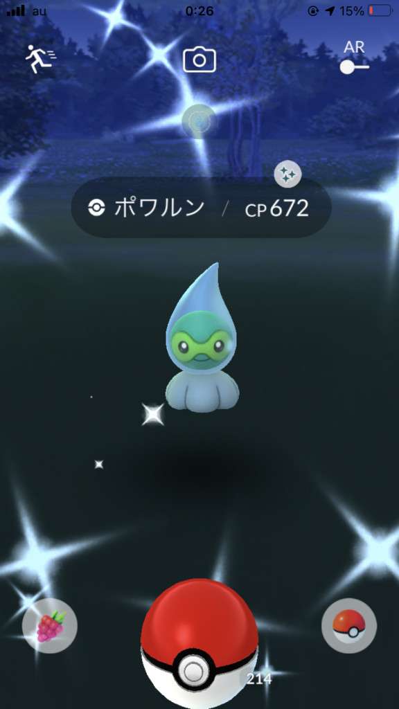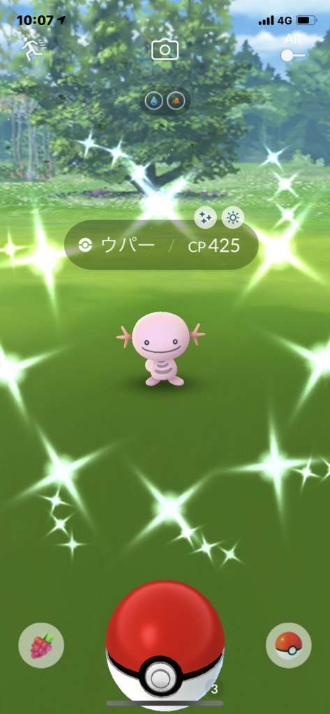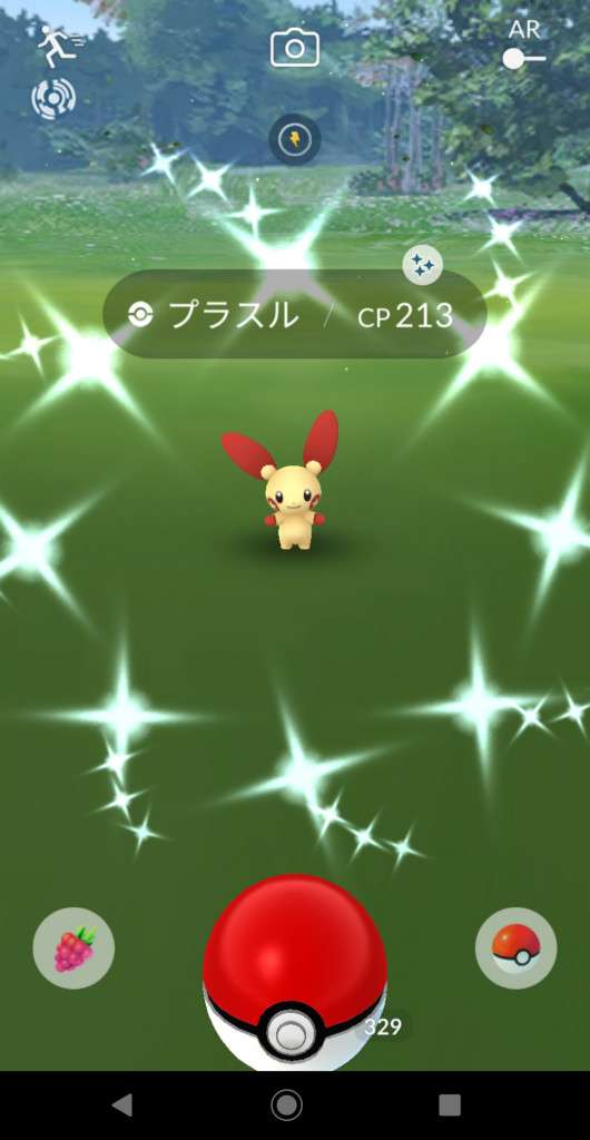 ・色違い出現したら、右上「AR+」のON・OFF切り替えで、タイミング良く写るまで何回も挑戦